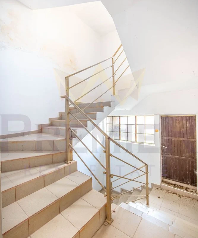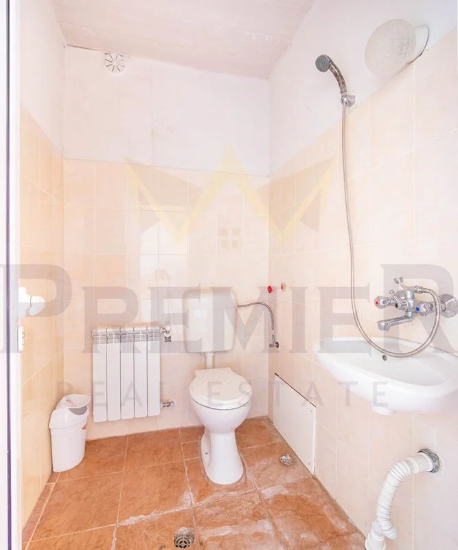 - Включващ общ хол, складови помещения (106,35кв.м), три просторни стаи и две санитарни помещения с отделен вход. (Опция-статут за магазин и др. и лице на улица)