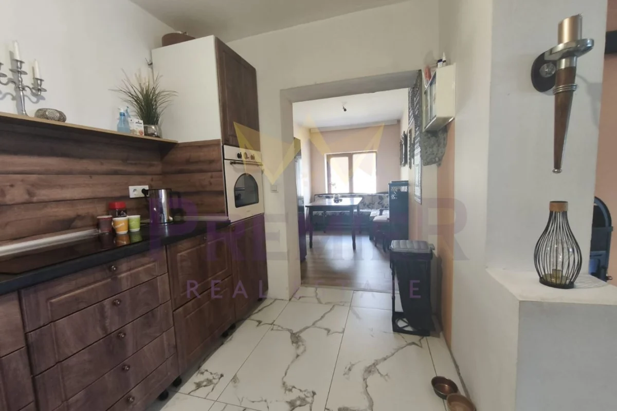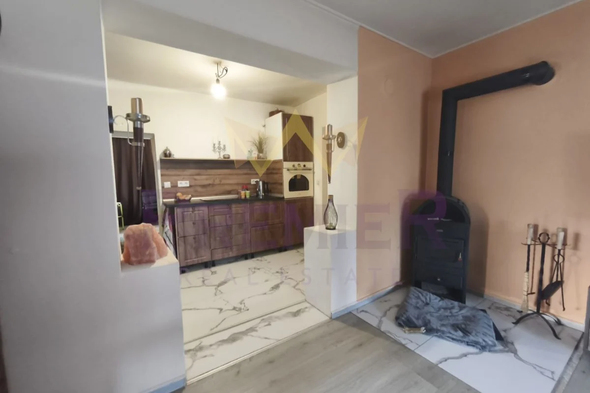 кухня и барбекю зона. Продава се с обзавеждането. Отоплението е с климатик и печка на дърва.