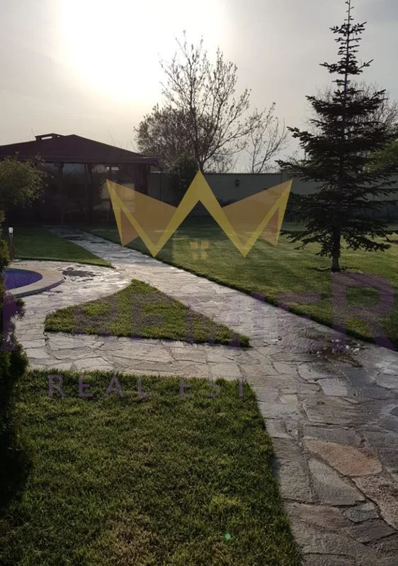 Къщата се предлага напълно обзаведена. Отоплението е с парно и климатици. Има гараж с техническо помещени за котел.