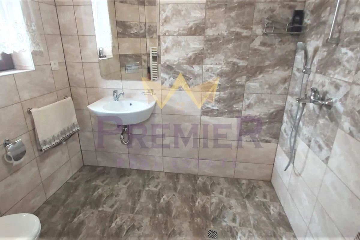 ИМОТИ ПРЕМИЕР представя на Вашето внимание чудесна къща в централната част на с. Рибарица, общ. Тетевен, обл. Ловеч. Ситуирана е на два етажа в двор с площ от 800 кв.м. Разгънатата застроена площ на къщата е 150 кв.м. На първи етаж има кухня, трапезария и хол обединени в общ дневен тракт, баня с тоалетна и антре. По вътрешни стълби стигаме до етаж две – три спални, коридор и баня с тоалетна. Обзаведена и оборудвана с всичко необходимо. Подово отопление в цялата къща, като в баните са монтирани и радиатори. В дворът е предвидено паркомясто. Изградена е септична яма. Достъпът до имота е по асфалтов път, в близост е до магазин и центъра на селото.