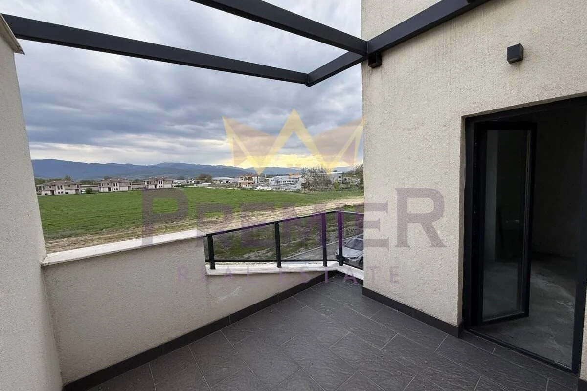 Втори етаж: три самостоятелни спални, всяка с излаз към тераса, просторен дрешник, баня с тоалетна и допълнителна тоалетна.
