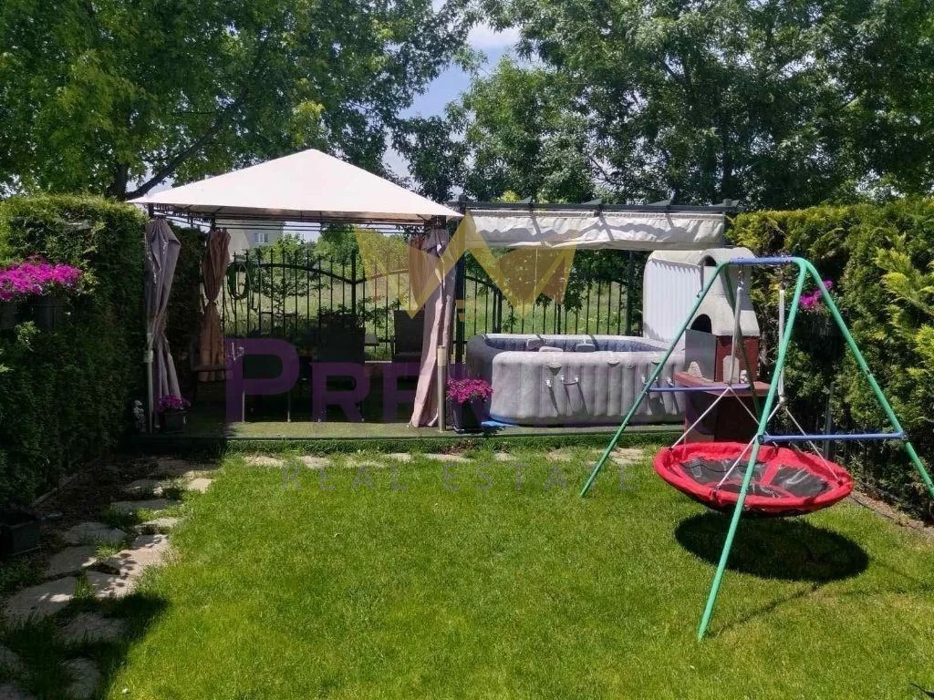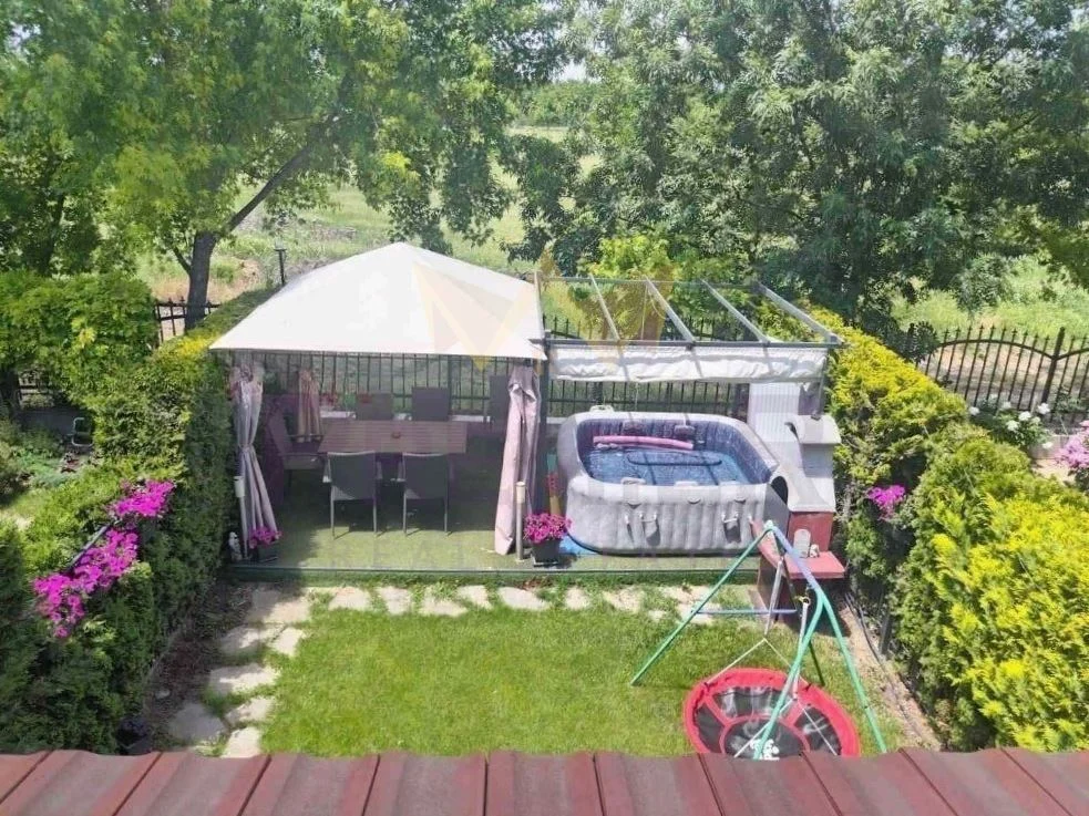 Дворът е отлично поддържан и разполага с барбекю зона, джакузи и шатра – идеално място за отдих и събирания.