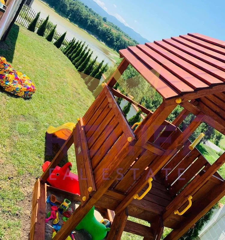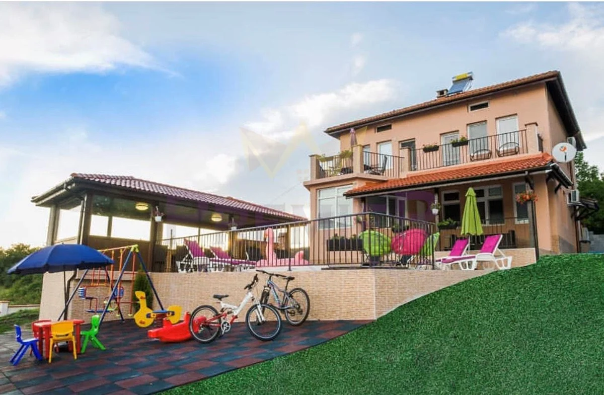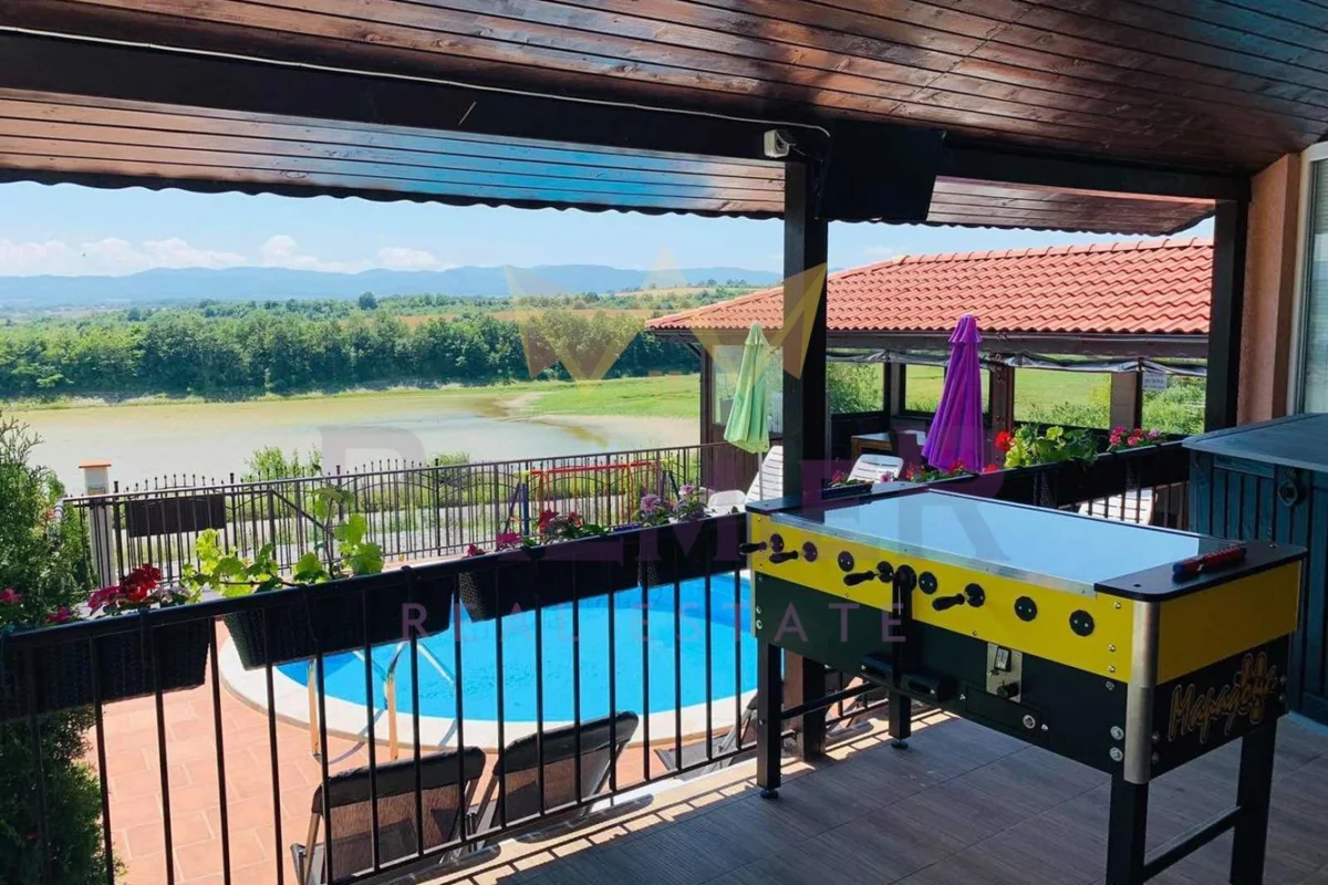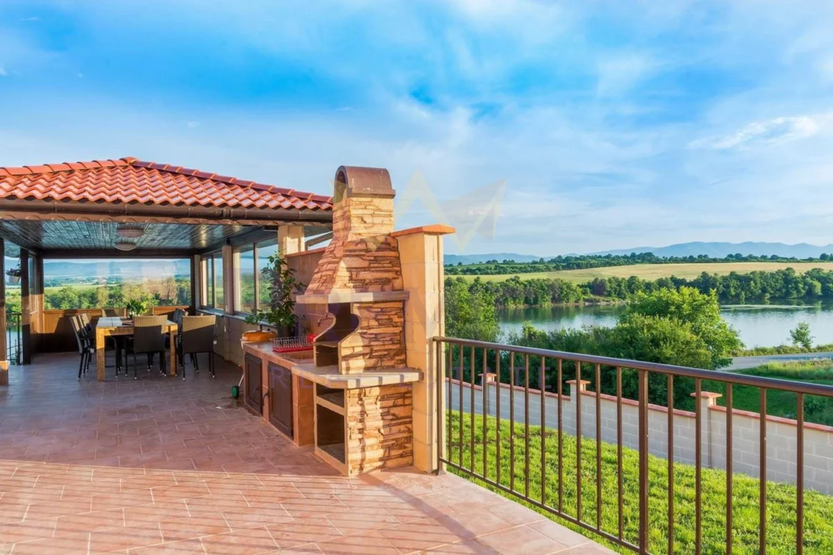 Имоти ПРЕМИЕР предлага на Вашето внимание двуетажна луксознообзаведена къща в област Шумен. Имотът разполага с чудесна гледка към язовира , уют и спокойствие. Разпределението на къщата е следното: входно антре, дневен тракт с обособен отделно кухненски бокс, четери спални, голяма веранда, две тераси и санитарен възел на всеки етаж. Къщата разполага с огромна зала, с камина, където може да прекарате чудесни семейни и приятелски вечери. Само на 25км. е разположен гр. Велики Преслав, втора Българска столица и един от най-културните забележителности на България. Двор с площ 1000м2 включващ голям навес с барбекю, басейн , детски кът и паркинг. Къщата е перфектна за живеене, както и за инвестиция. Предлага се напълно оборудвана и обзаведена !!