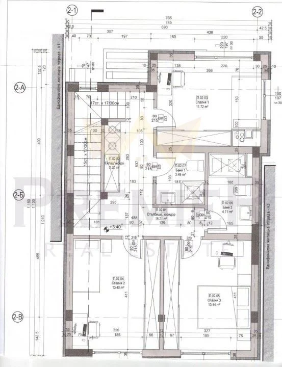 - 1 Етаж- коридор, три спални, две бани с тоалетна, склад и мокро помещение, балкон.