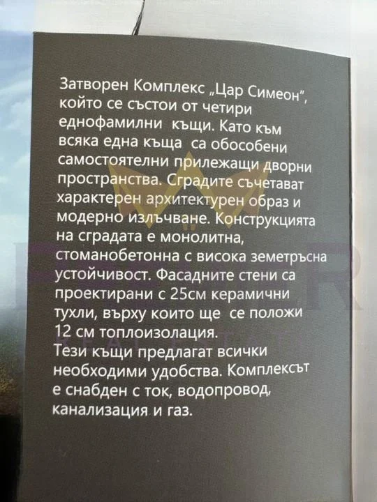 Цената е до пълно завършване, изолация, двор, вътре – шпакловка и замазка.