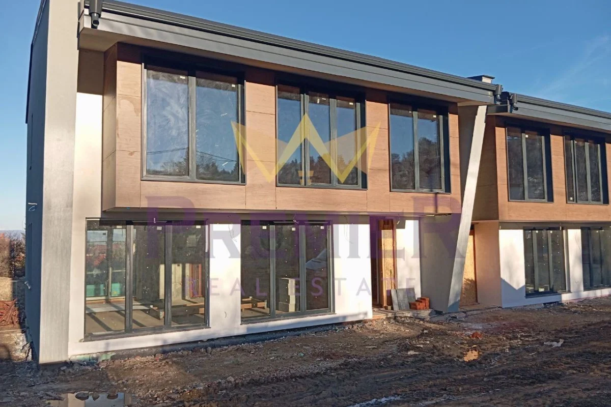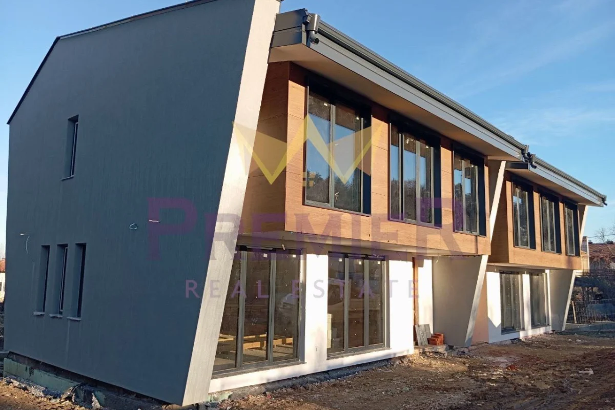 Имоти Премиер ви представя еднофамилна редова къща в комплекс от пет еднофамилни редови къщи разположени в две групи.