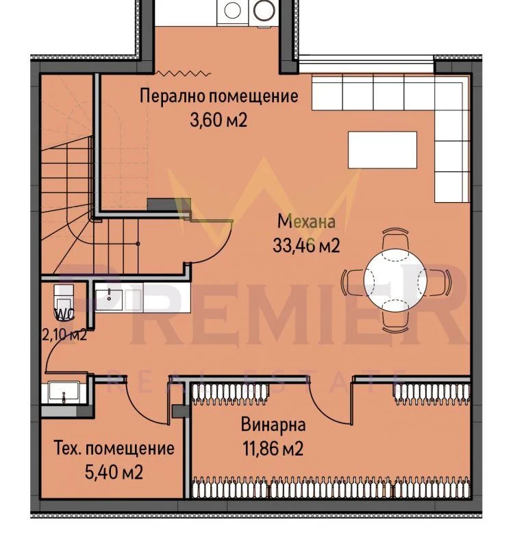 - Сутерен – в който са разположени кът за работа, кът за спане, гардеробна и техническо помещение, което ще обслужва термопомпата. Разбира се, ако нямате нужда от допълнителна спалня, мястото може да бъде проектирано като игрална зала, сауна, или склад.
