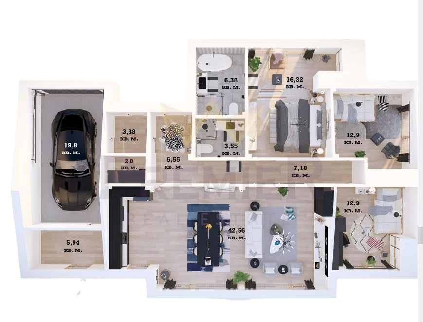 -ДНЕВНА С КУХНЕНСКИ БОКС – 42.56 КВ.М.