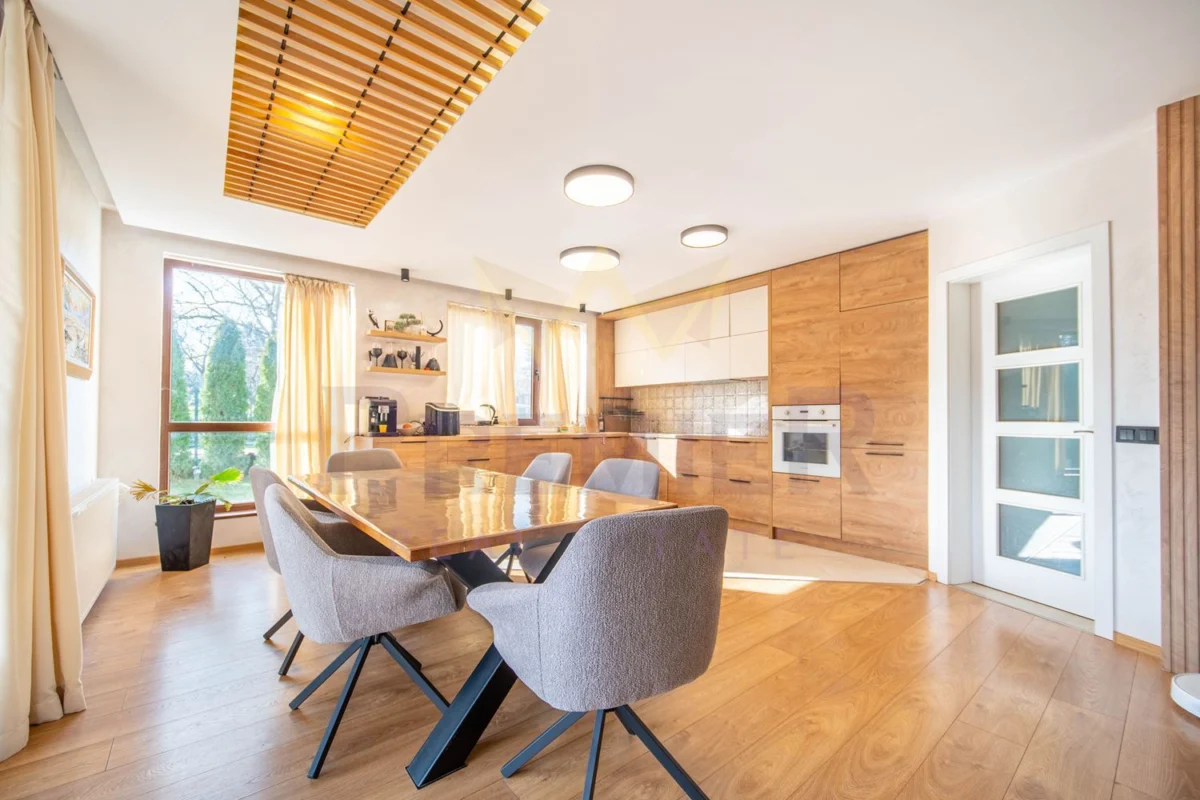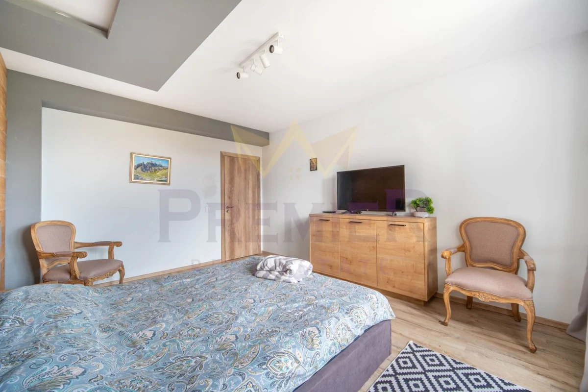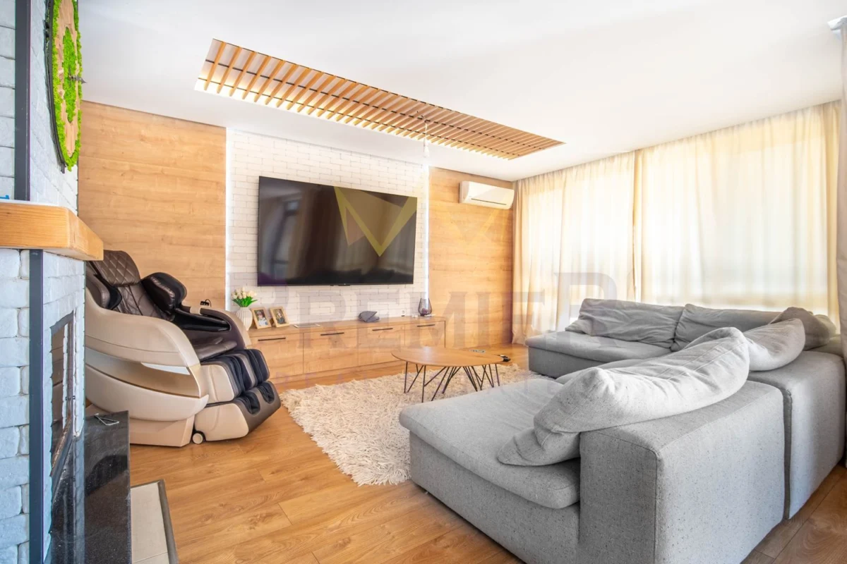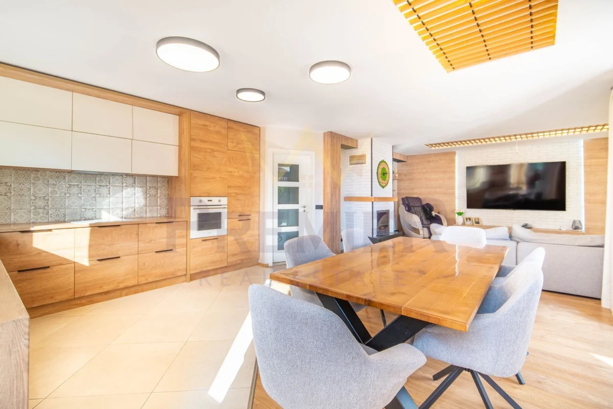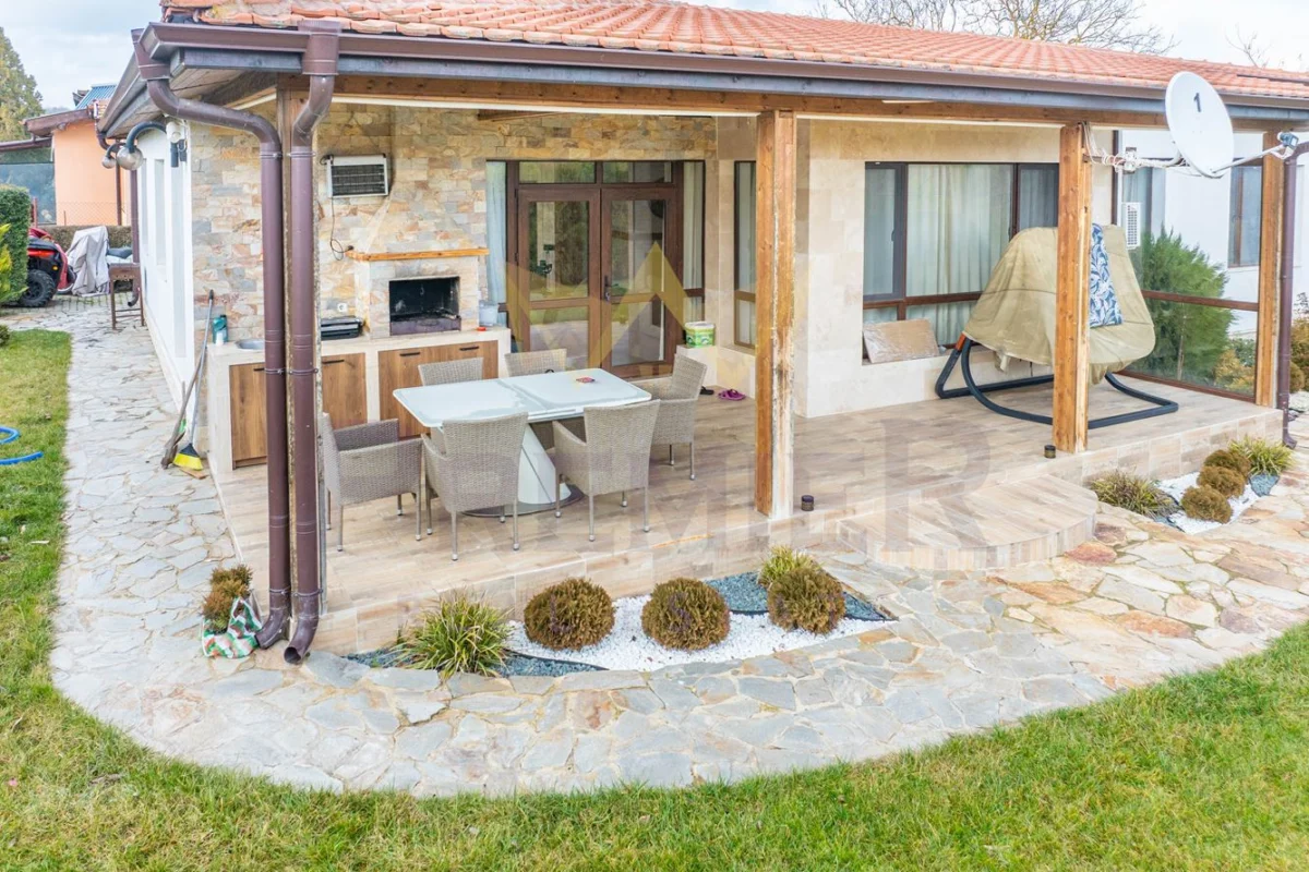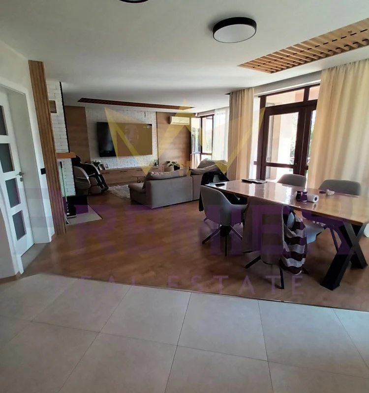 Имотът разполага с просторна дневна зона, модерна кухня с трапезария, четири уютни спални и функционални санитарни помещения.