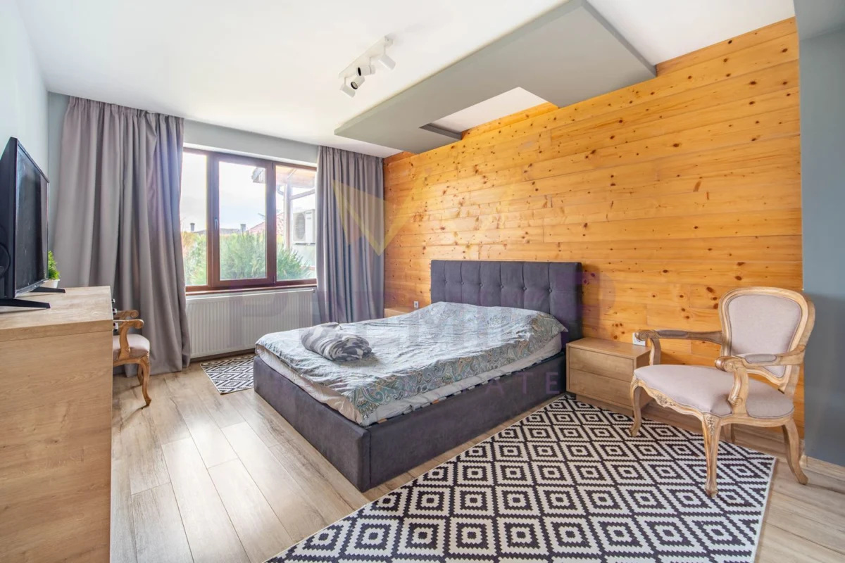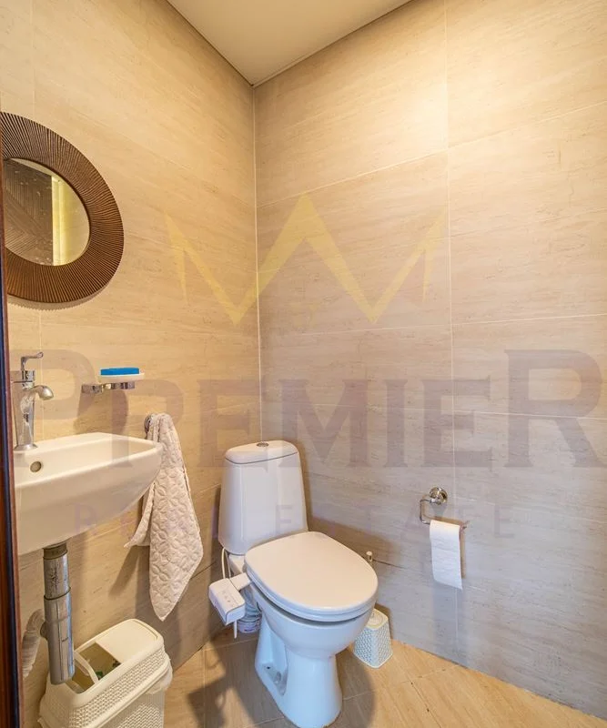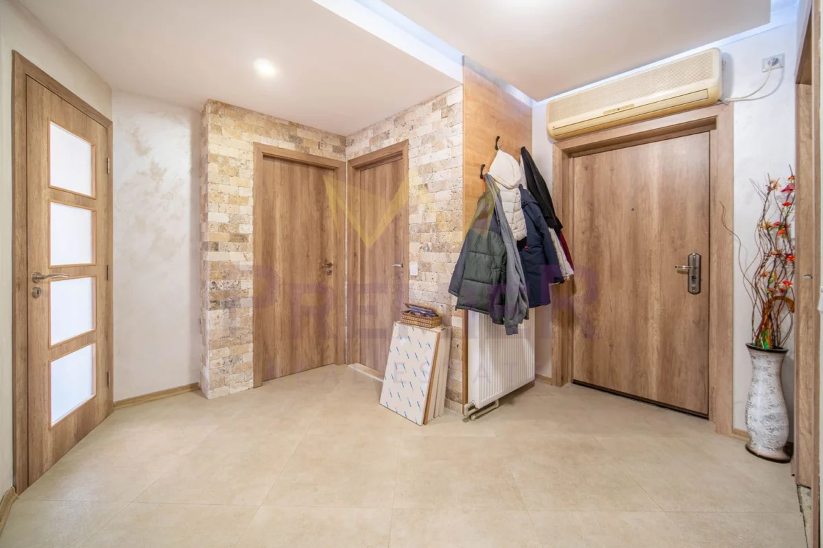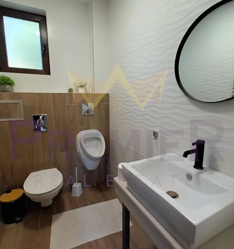 Интериорът се отличава с топли земни тонове, естествени материали и минималистичен дизайн, който подчертава усещането за спокойствие и елегантност.
