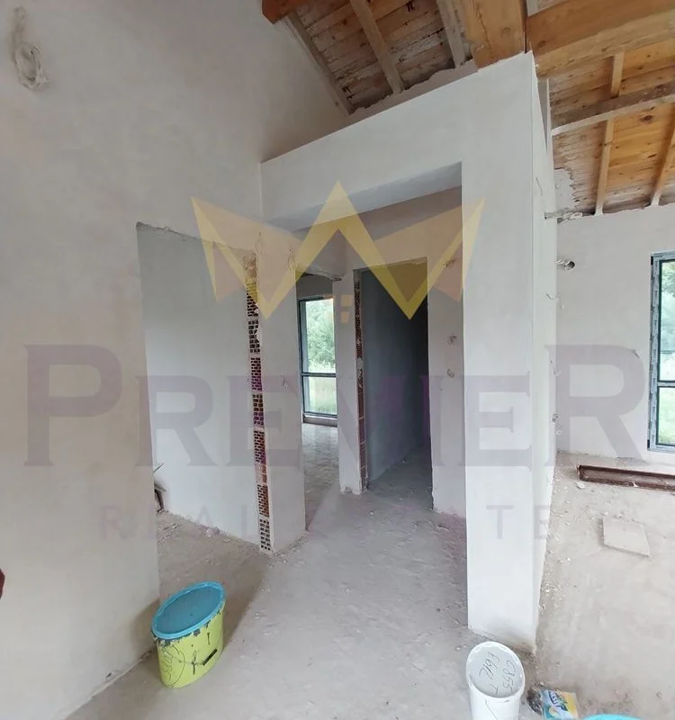 Къщата е с РЗП 60кв. м със следното разпределние: всекидневна с кухненска част, комбиниран санитарен възел, спалня, килер, родителска спалня и килер.