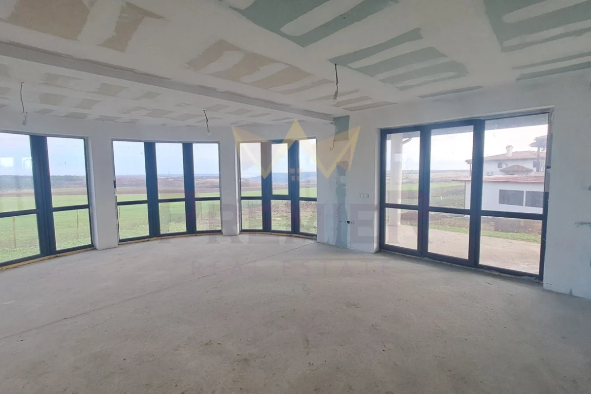просторен дневен тракт, три спални с баня и тоалет от които две имат излаз на двор и