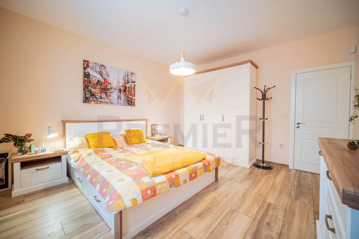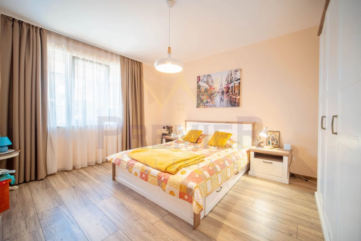 Върху разгъната застроена площ от 183 кв.м. са разпределени коридор, две светли спални – една от които с дрешник , всекидневна с кухня , два санитарни възела, килер, веранда с барбекю зона. Има възможност за трета спалня! Предлага се напълно оборудвана и обзаведена с всичко необходимо за едно домакинство. Отоплението на къщата се осъществява чрез климатик и камина с въздухопроводи.