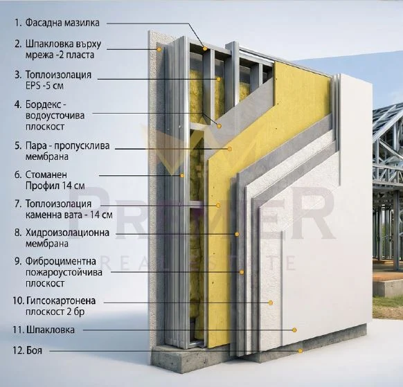 - Енергийно ефективни стени 25 см + конструкция с живот над 150 години