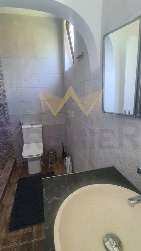 Две спални и две бани, двойно легло king size, с кожена табла и място за съхранение, плюс поръчкови вградени гардероби, 75-инчов телевизор Samsung, турски диван от велур, фризер-ракла и пералня.