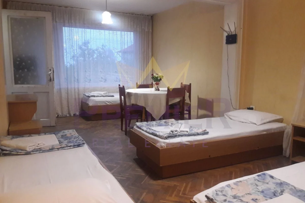 Първи етаж- входно антре, три стаи, всяка от които със самостоятелен санитарен възел, тераса 20 кв.м.