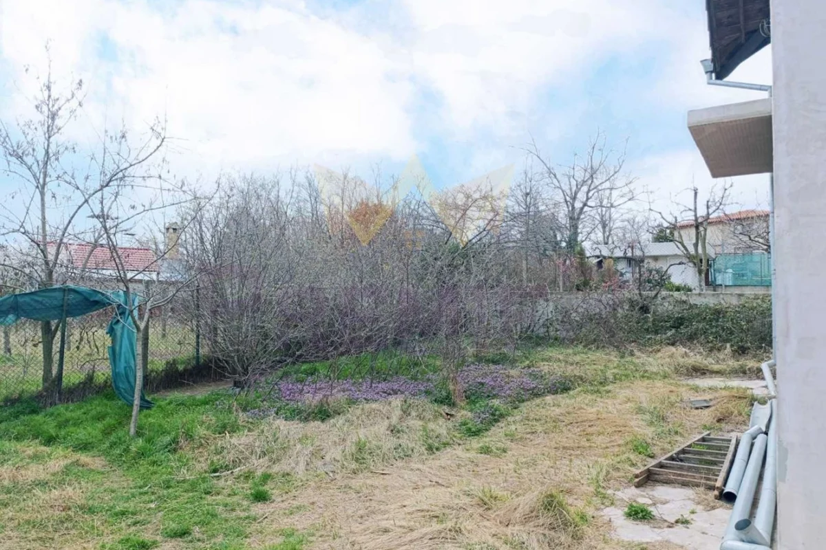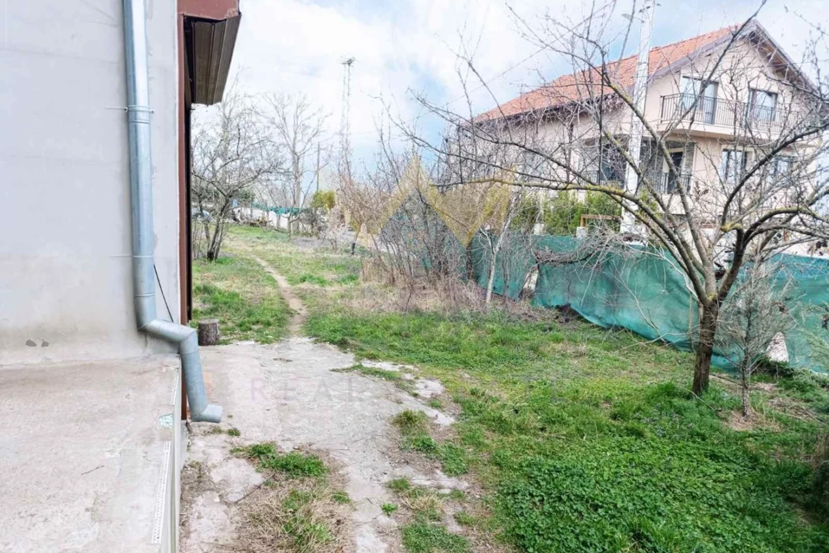 Дворът от 1000 кв. м. е озеленен с плодни дръвчета и включва склад за инструменти и обширно паркомясто. Предвидено е възможността за разделяне на двора на две, благодарение на двете партиди за ток и вода. Къщата е захранена с вода директно от централния водопровод на главния път и е оборудвана с улично осветление за удобство и сигурност през вечерта.