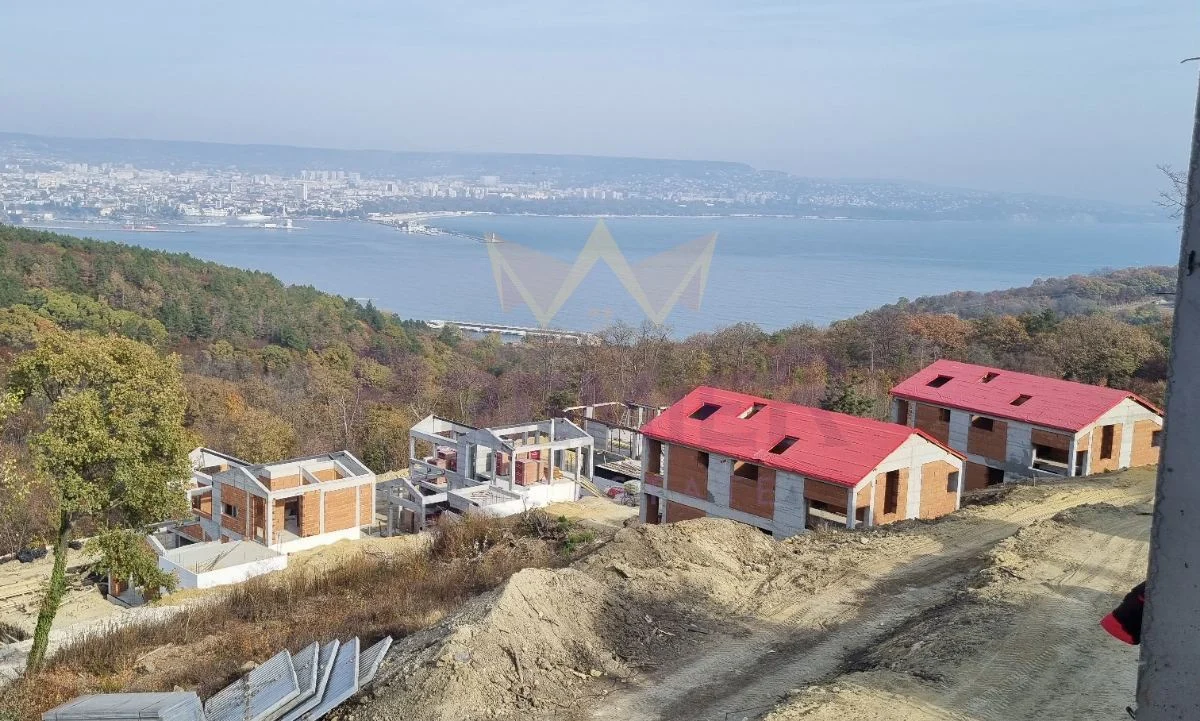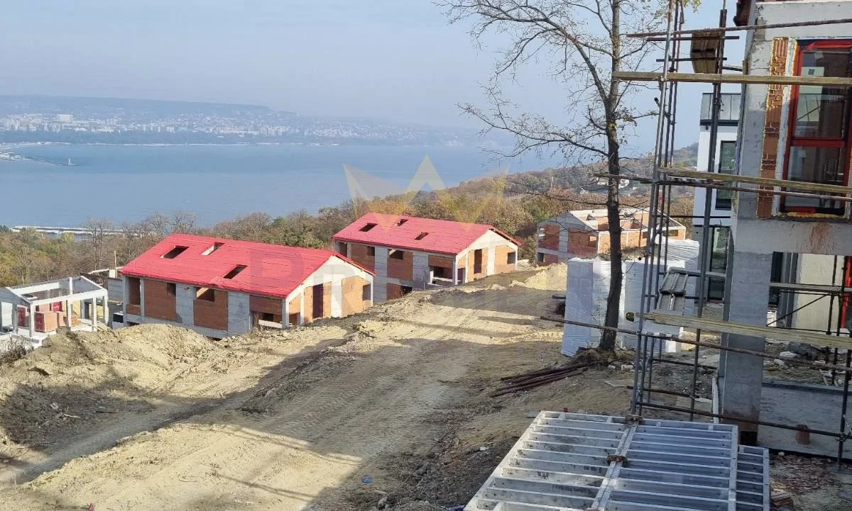 ИМОТИ ПРЕМИЕР представя на Вашето внимание фамилна къща в строеж в кв. Аспарухово. Имотът е част от уникален комплекс от къщи с чудесна морска панорама и прекрасна инфраструктура. Къщата е на два етажа със следното разпределение: етаж едно се състои от дневен тракт – 43 кв. м. с излаз на веранда, спалня 11,30 кв.м., баня, тоалетна дрешник и сервизно помещение. По вътрешно стълбище се стига до етаж две – спалня 16,8 кв.м. с тераса, спалня 18,1 кв.м. с тераса, спалня 15,3 кв.м., две бани с тоалетни и дрешник. Двоен гараж към къщата.