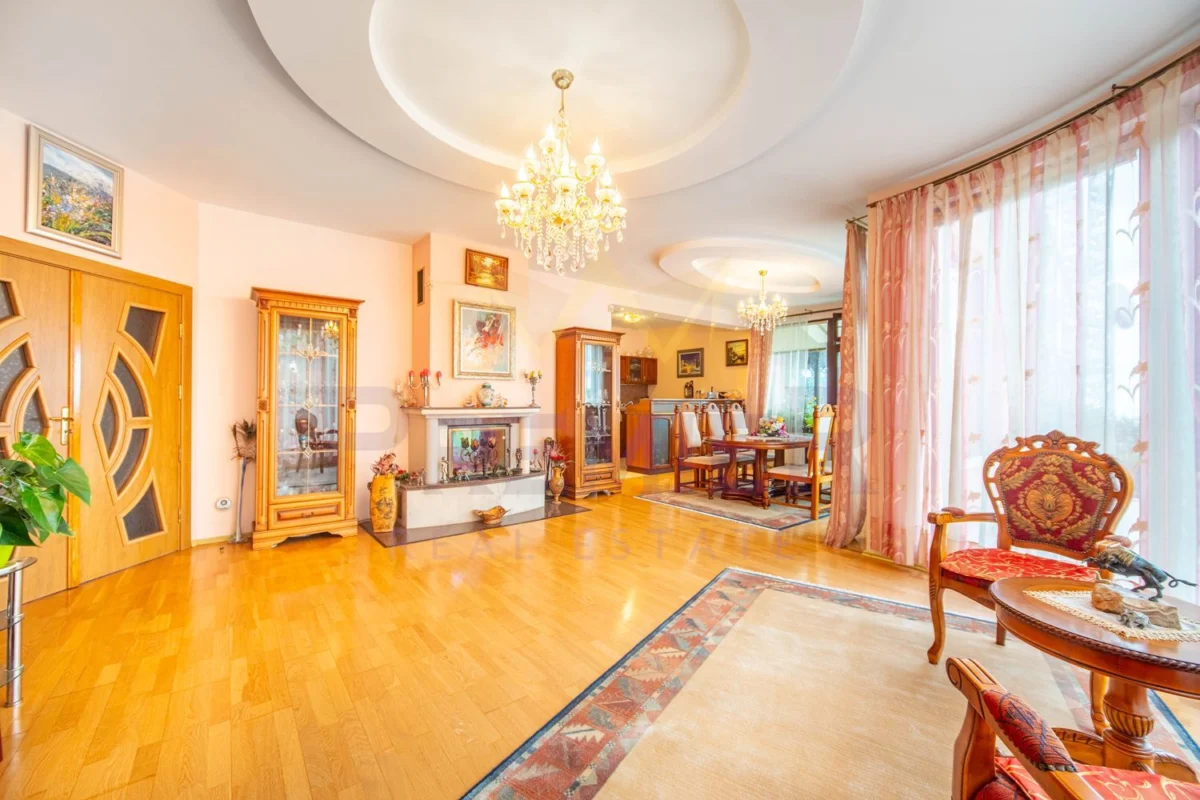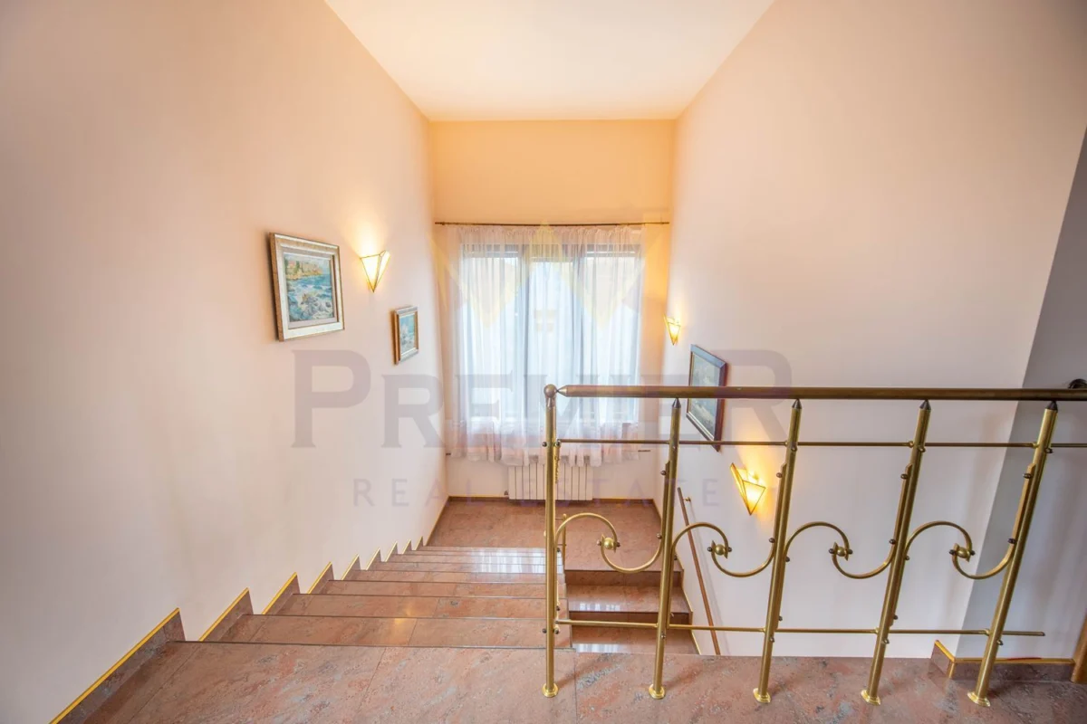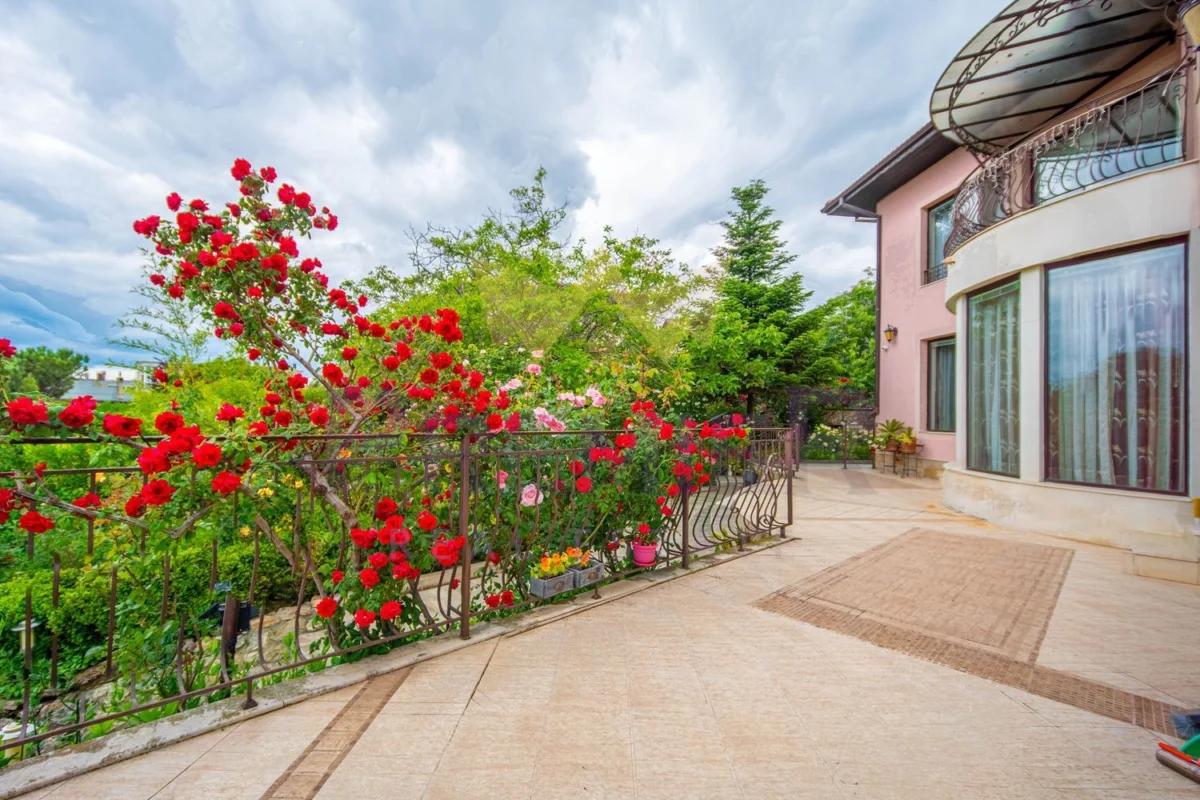 Уединението, сигурността и дискретността са гарантирани благодарение на масивна ограда и красива озеленена градина. Имотът е разположен в близост до училища, детски градини, търговски центрове и заведения за хранене, предлагайки удобство и практичност на бъдещите собственици.
