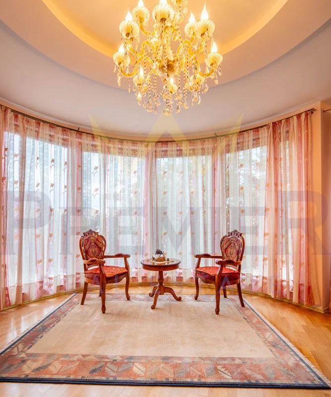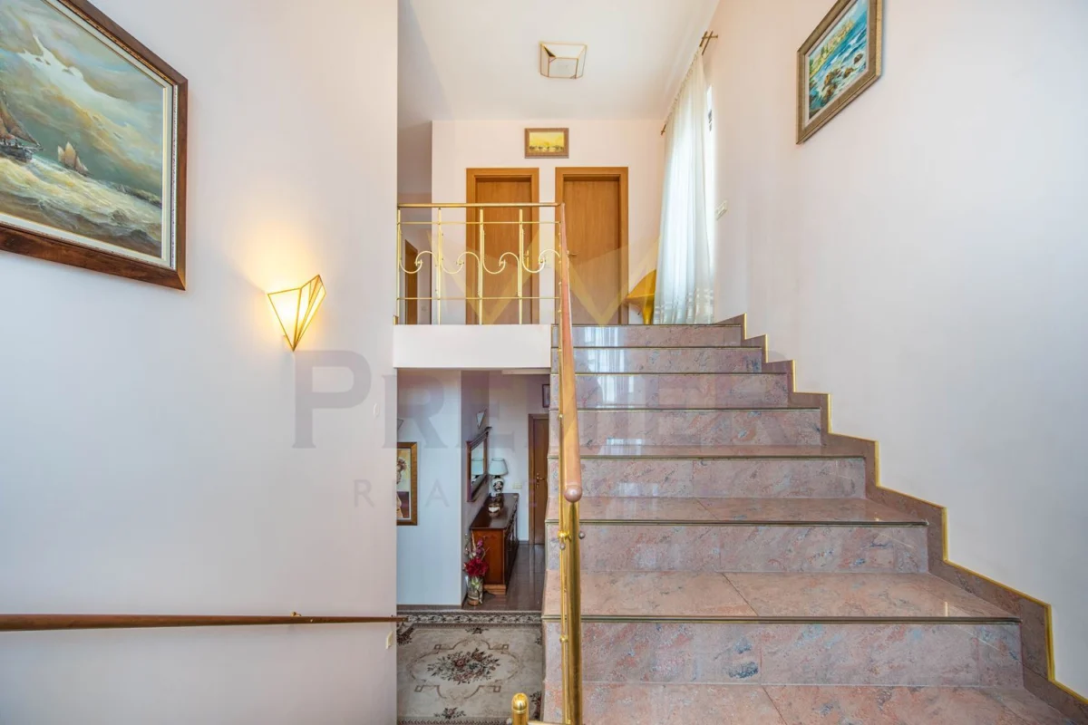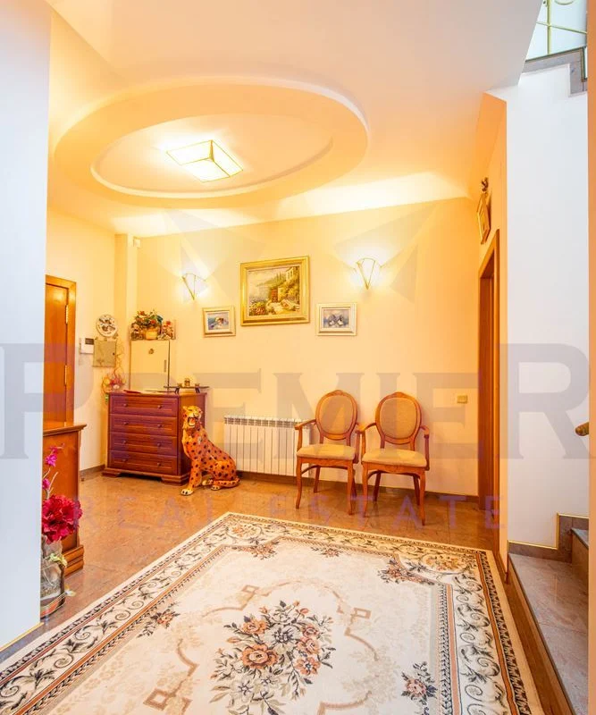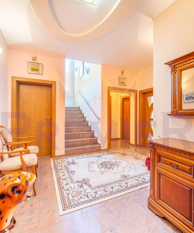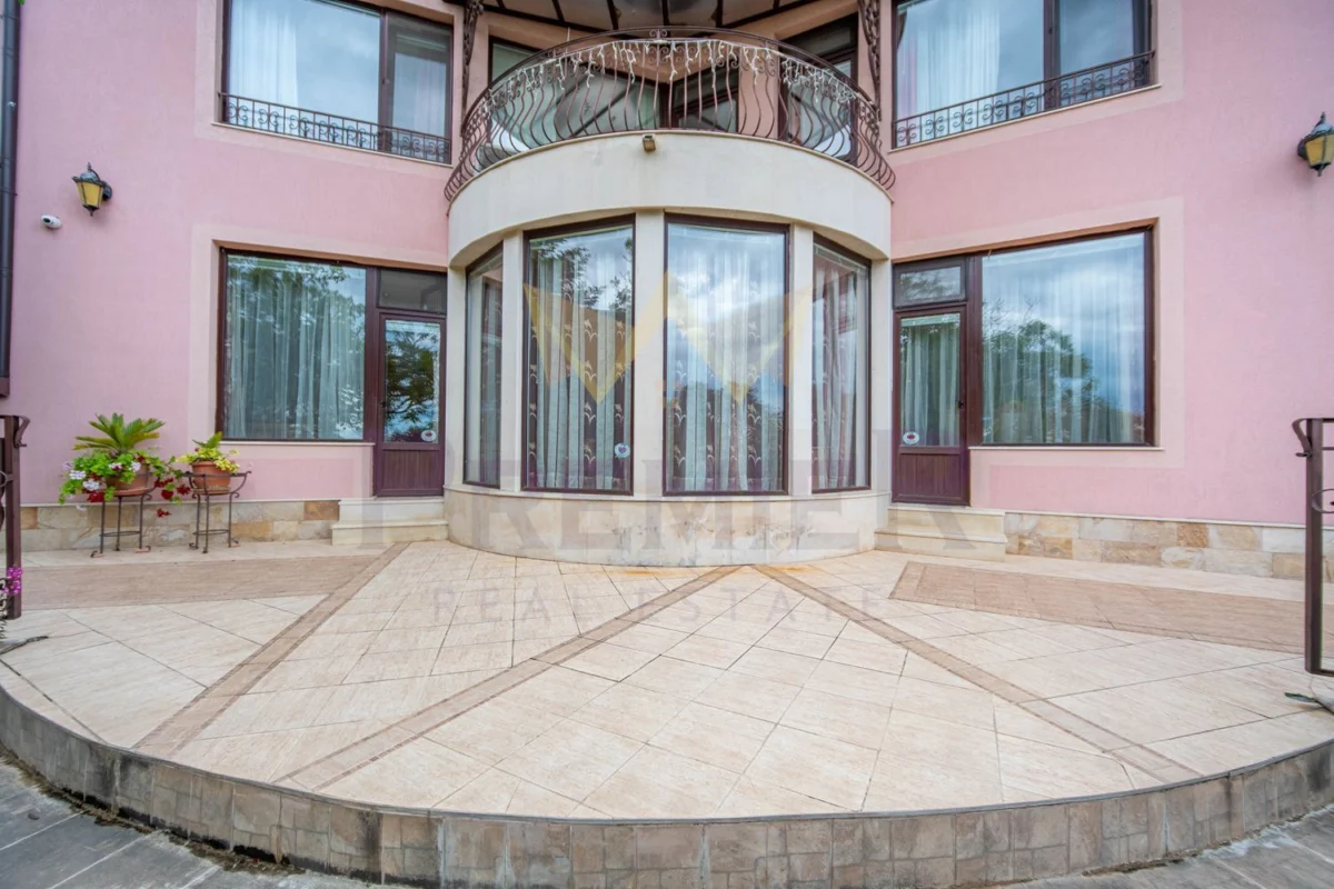Уединението, сигурността и дискретността са гарантирани благодарение на масивна ограда и красива озеленена градина. Имотът е разположен в близост до училища, детски градини, търговски центрове и заведения за хранене, предлагайки удобство и практичност на бъдещите собственици.