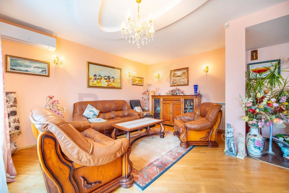 Имотът е изграден върху парцел от 1882 квадратни метра и предлага комбинация от естествени материали и настилки – гранит, естествен паркет и дюшеме, мебели от естествено дърво. Къщата разполага с разгърната застроена площ от 331 квадратни метра, разпределена върху приземен етаж и два жилищни етажа. В допълнение, имотът разполага с отопляем басейн, който може да бъде ползван през цялата година.