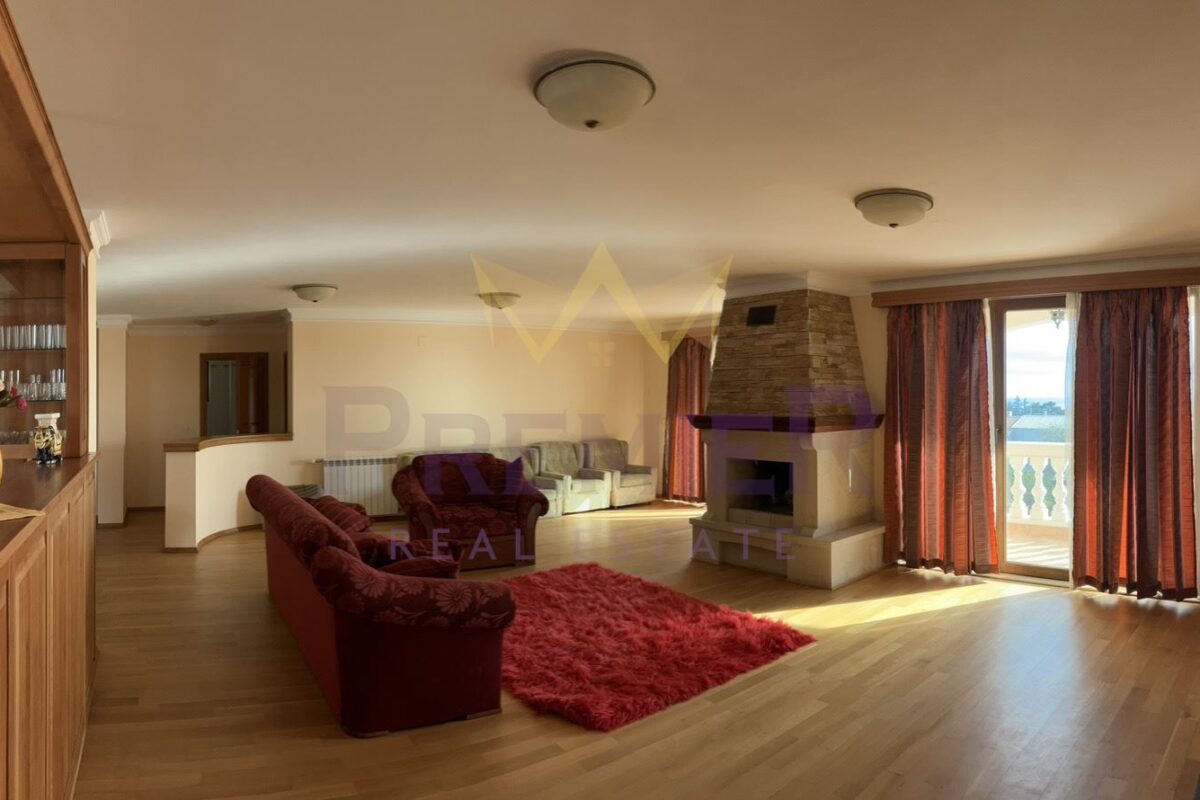 Имаме удоволствието да ви представим изключителен имот – къща с РЗП 1350 кв.м., разположена на четири етажа и организирана в четири самостоятелни апартамента. Общото разпределение включва 12 стаи, от които 11 спални – всяка със собствена баня с тоалетна и панорамна тераса. Към повечето спални има и просторни дрешници.