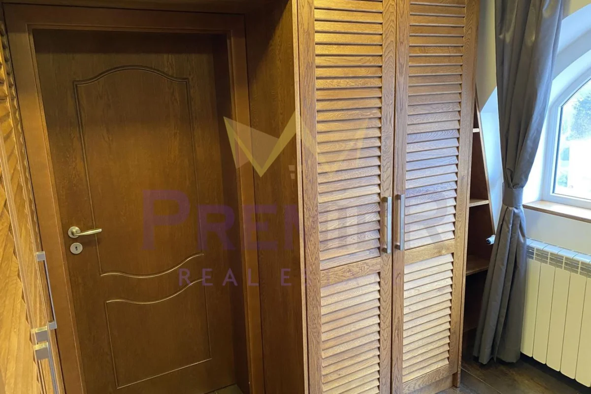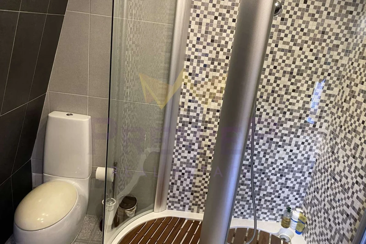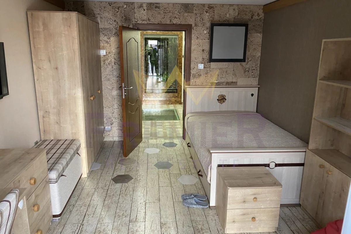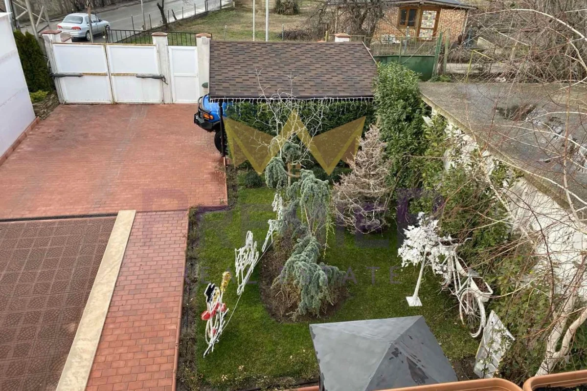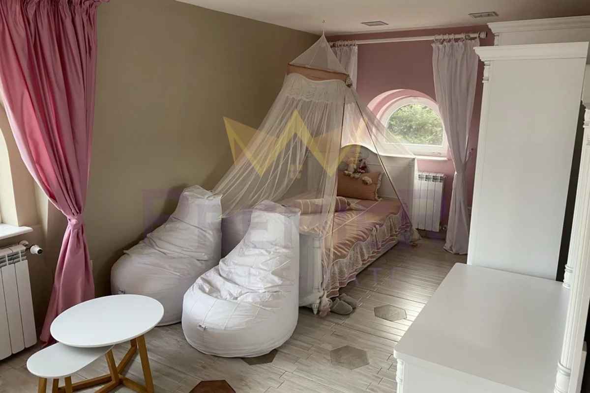 На второ ниво са разположени стая за гости, голям дрешник, две детски стаи и две бани с тоалетни.
