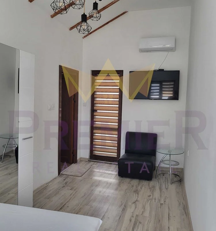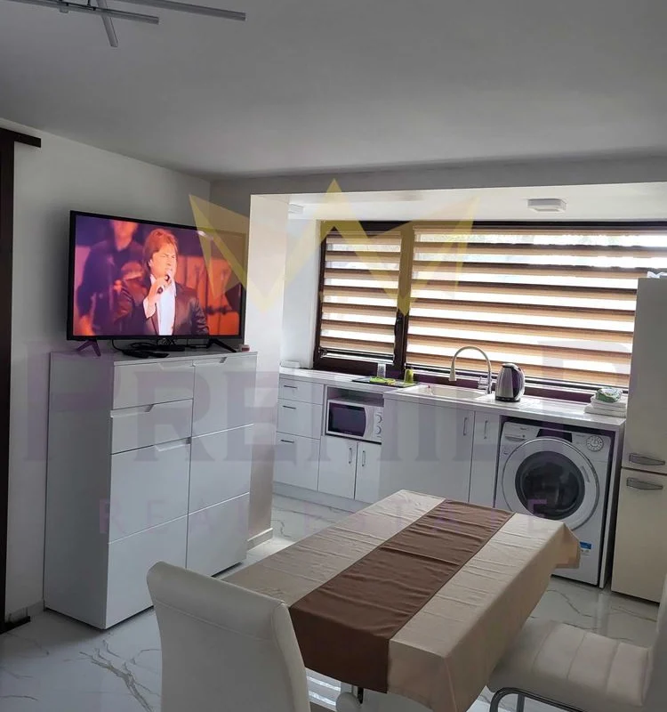 - Първи етаж: Просторна всекидневна с трапезария и кухня в отворен план, както и комбиниран санитарен възел.