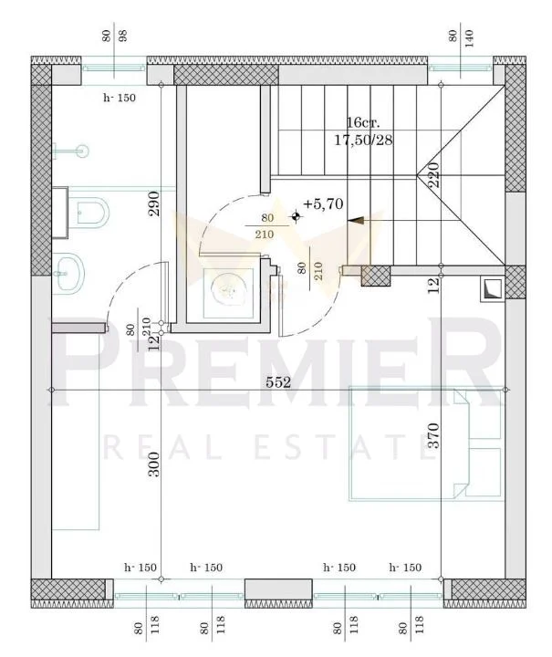 Етаж 3: баня с тоалетна, килер и голяма спалня, която при необходимост може да бъде разделена на две самостоятелни стаи.