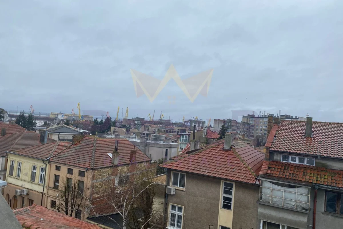 Имоти Премиер представя многостаен апартамент на две нива в центъра на Бургас, с частична гледка към морето.