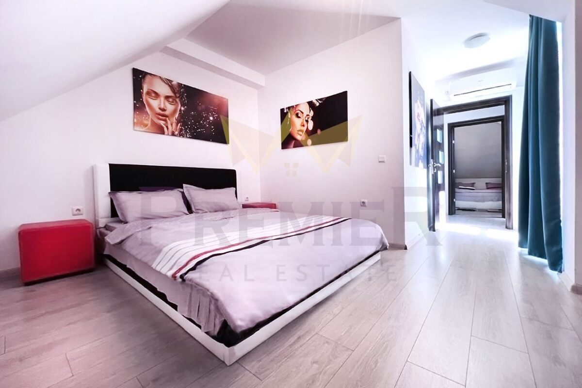 Имоти ПРЕМИЕР представя на Вашето внимание просторен мезонет в гр. Балчик. Разположен в затворен комплекс локализиран на тихо място гарантиращо Вашето спокойствие. На територията можете да се насладите на открит басейн, лятна кухня с барбекю и уникална панорамна тераса с мини бар, шатра, шезлонги, душове, представяща уникален изглед към необятно море и красивият Балчик. Апартаментът е със самостоятелен вход и на площ от 139м2 са разположени просторна всекидневна с френски прозорци, оборудван кухненски бокс, две спални, два комбинирани санитарни възела, тераса с неповторима гледка!