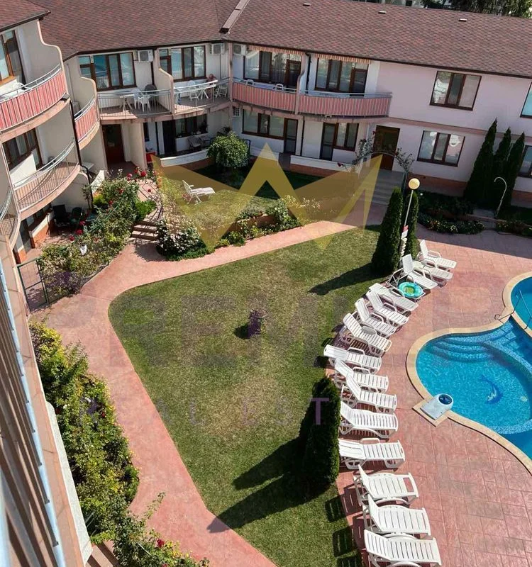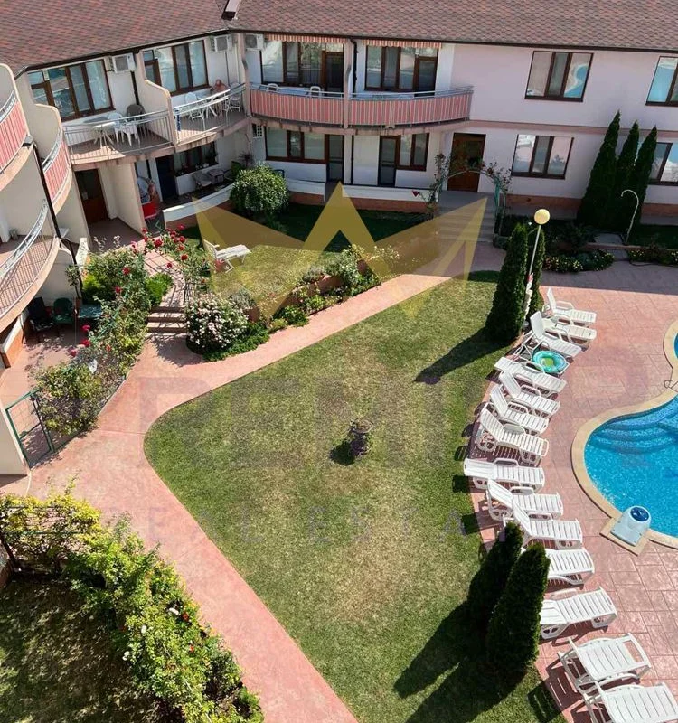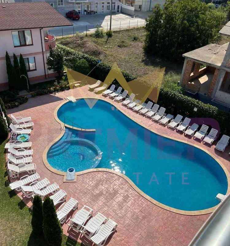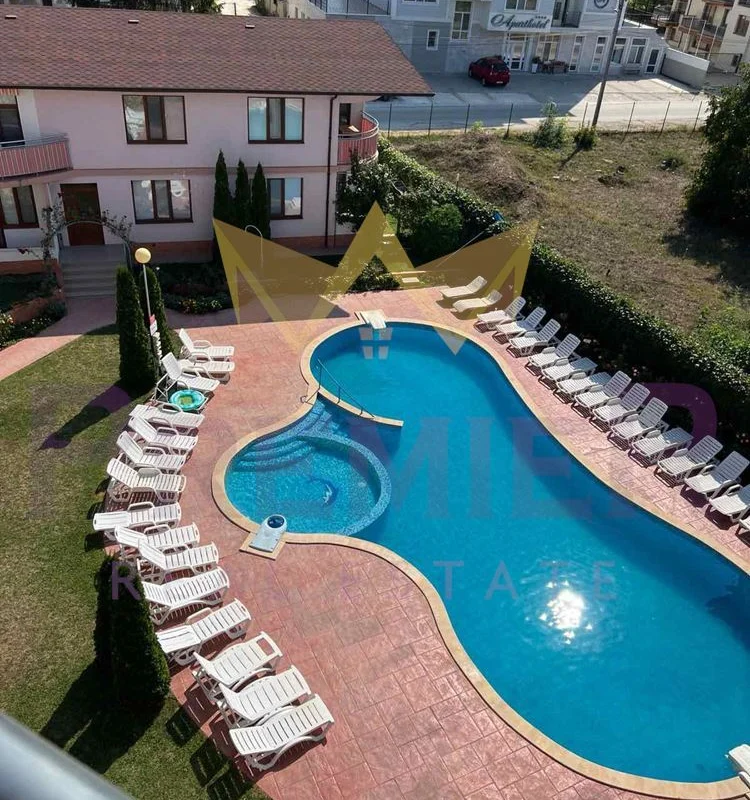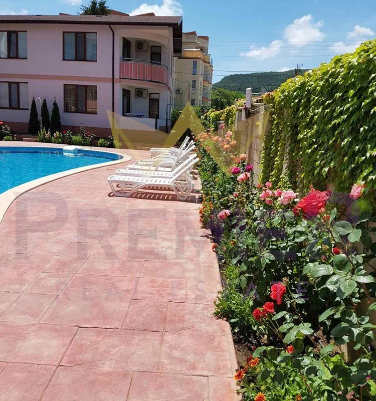 Апартаментът се намира на четвърти и пети етаж в комплекс от затворен тип с басейн и естетично аранжиран двор.