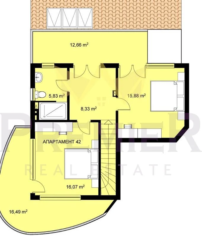 Имоти Премиер предлага на Вашето внимание нов многостаен апартамент с три спални от тип мезонет в затворен комплекс в с. Кранево, община Балчик.