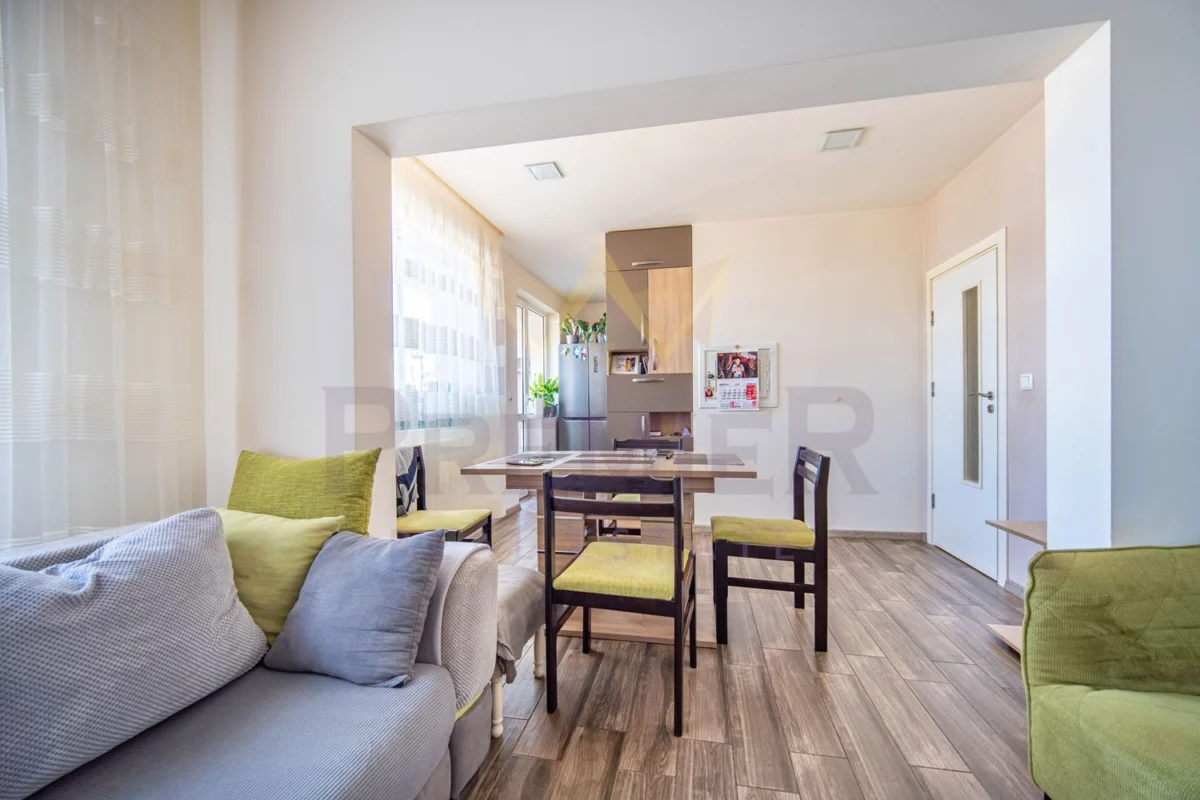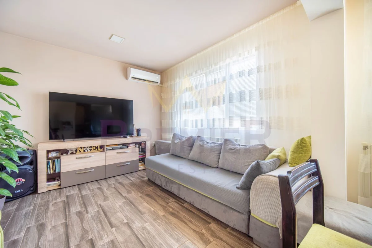 Апартаментът се намира в горната част на града близо до големи вериги магазини, училища, детски градини и други удобства.