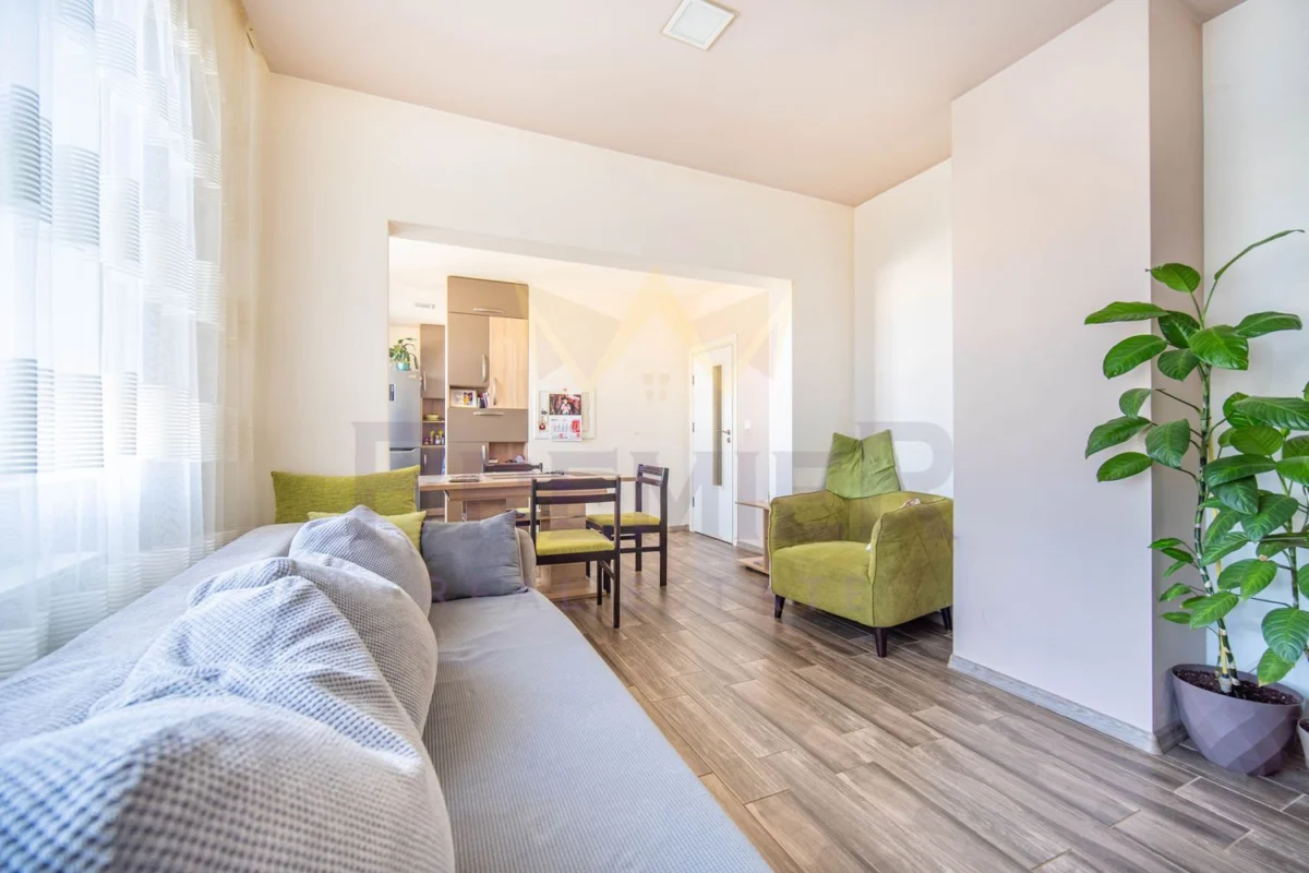 - Кухня, всекидневна и остъклена тераса слети в едно просторно общо помещение
