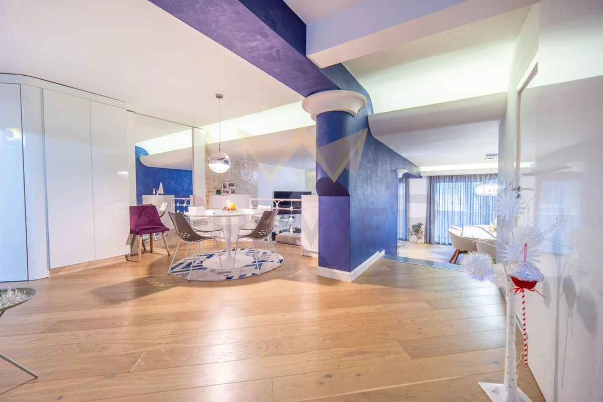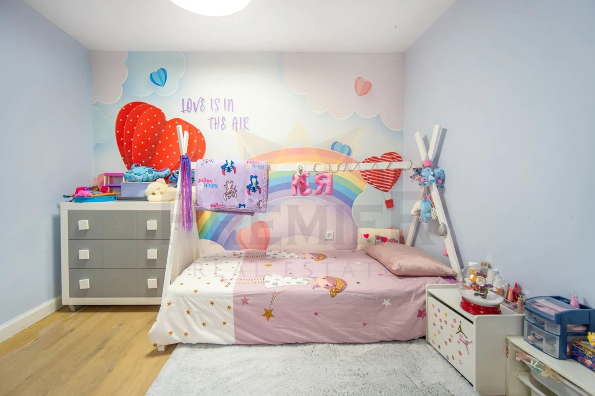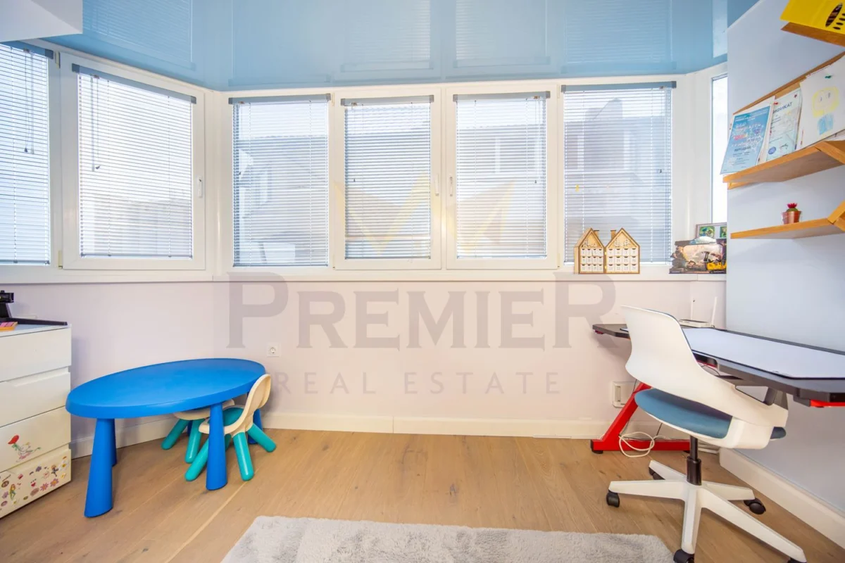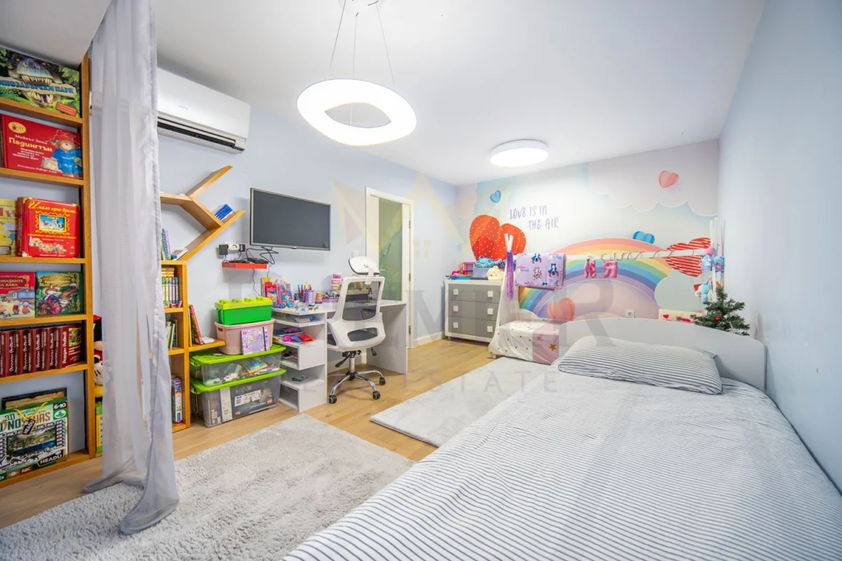 Жилището е луксозно обзаведено, в свежи и приятни цветове, с усещане за простор и уют. Предвидени са множество вградени гардероби и функционални пространства за съхранение, което го прави изключително удобно за семейство и за целогодишно обитаване.