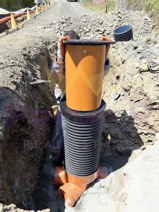 • Имотът има партиди и изградени водопровод ф90 с голямо налягане, трифазен ток с СВТ 4х25,