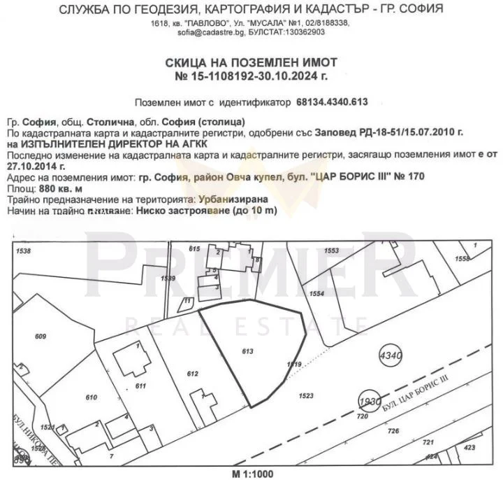 Имоти Премиер предлага на Вашето внимание парцел за продажба в град София бул.Борис III.