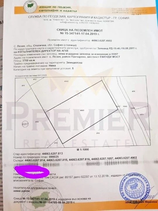 226 лв./м2 - 3700 м2 Парцел