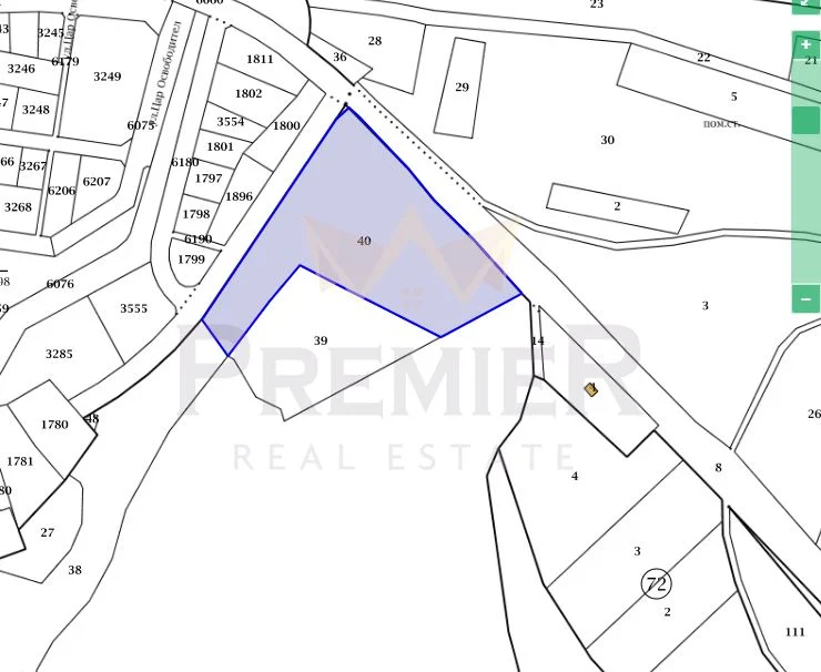 **Голям парцел:** Достатъчна площ за застрояване, позволяваща изграждане на семейна резиденция, вилно селище или друг тип проект.