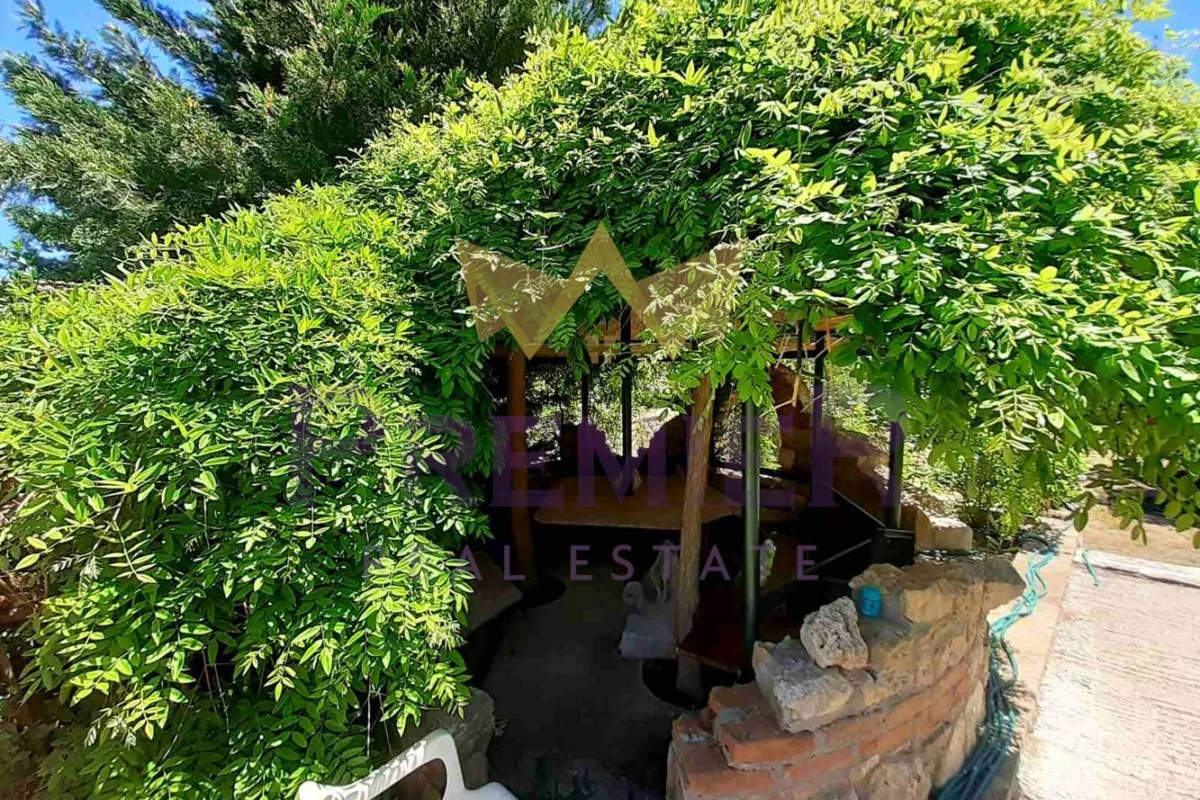 Площ от 760 кв.м и е уникално аранжиран с всякакви екзотични растения, прокарана система за водо-събиране, резервоар за поливане, беседка за почивка и масивна каменна ограда.