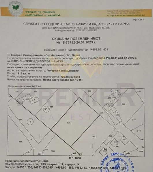 Продава парцел село Генерал Кантарджиево област Варна