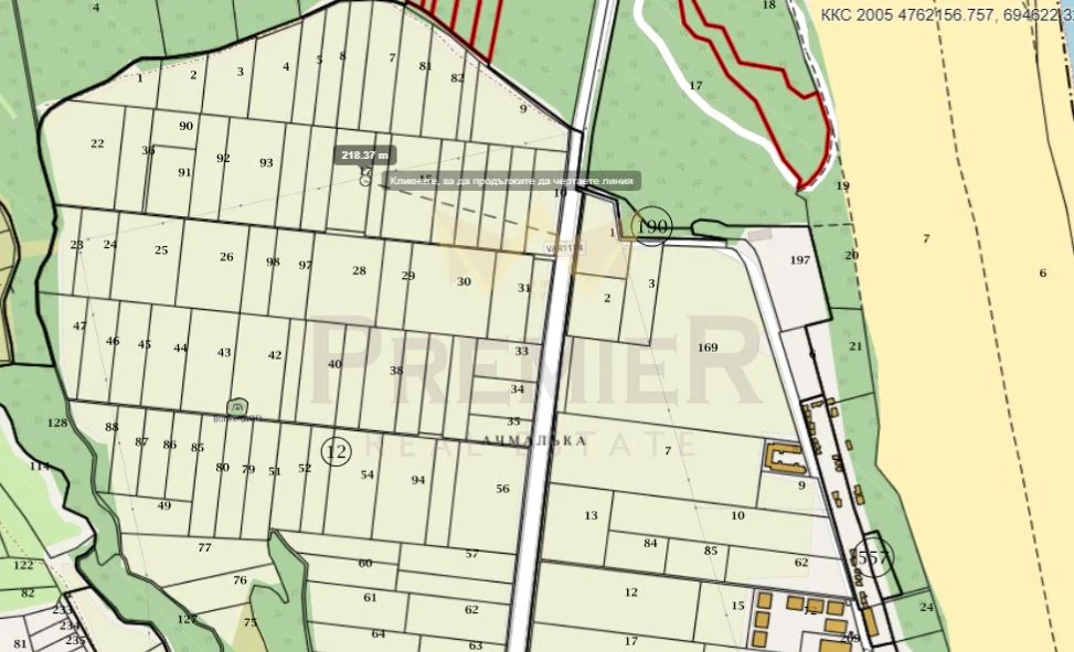 Имотът е с площ 5000кв.м. на 500 метра от плажната ивица.
