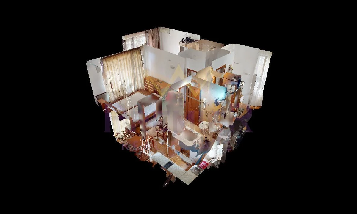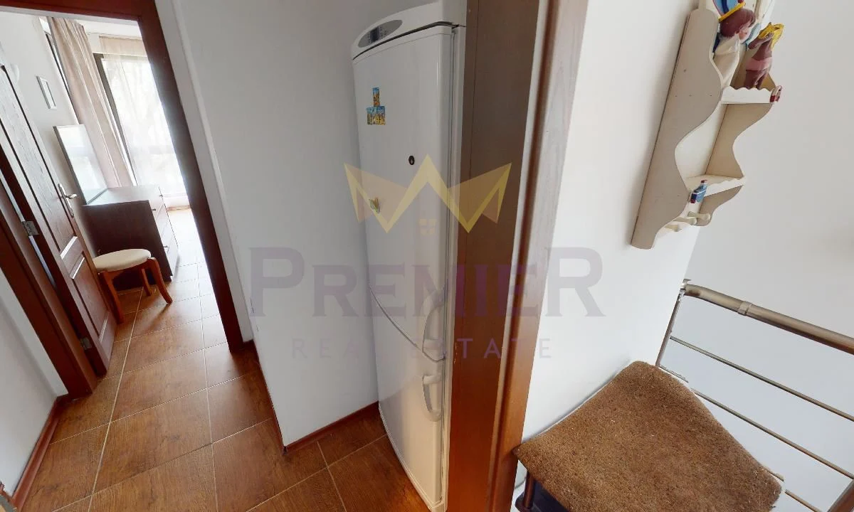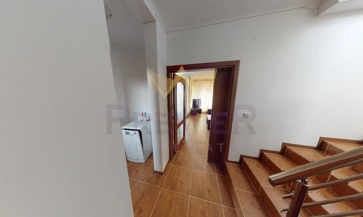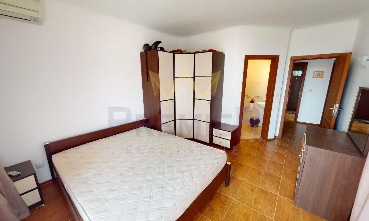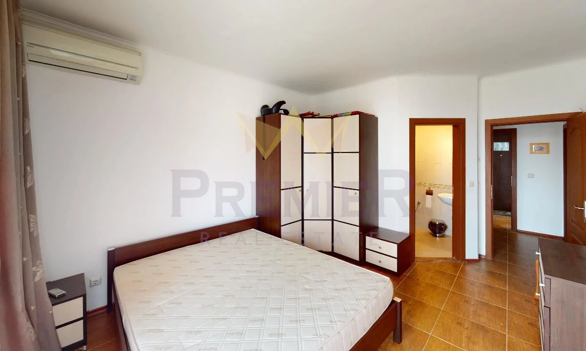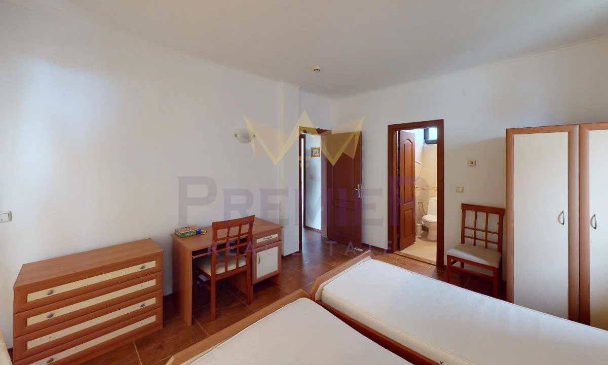 Апартаментът е разположен на втори етаж, с площ 130 кв.м, и се състои от просторна и светла дневна зона, две спални, баня с тоалетна и тераса. Обзавеждането е изчистено и стилно, осигуряващо усещане за простор и уют. Имотът е напълно готов за ползване и подходящ както за постоянно живеене, така и за ваканционен отдих.