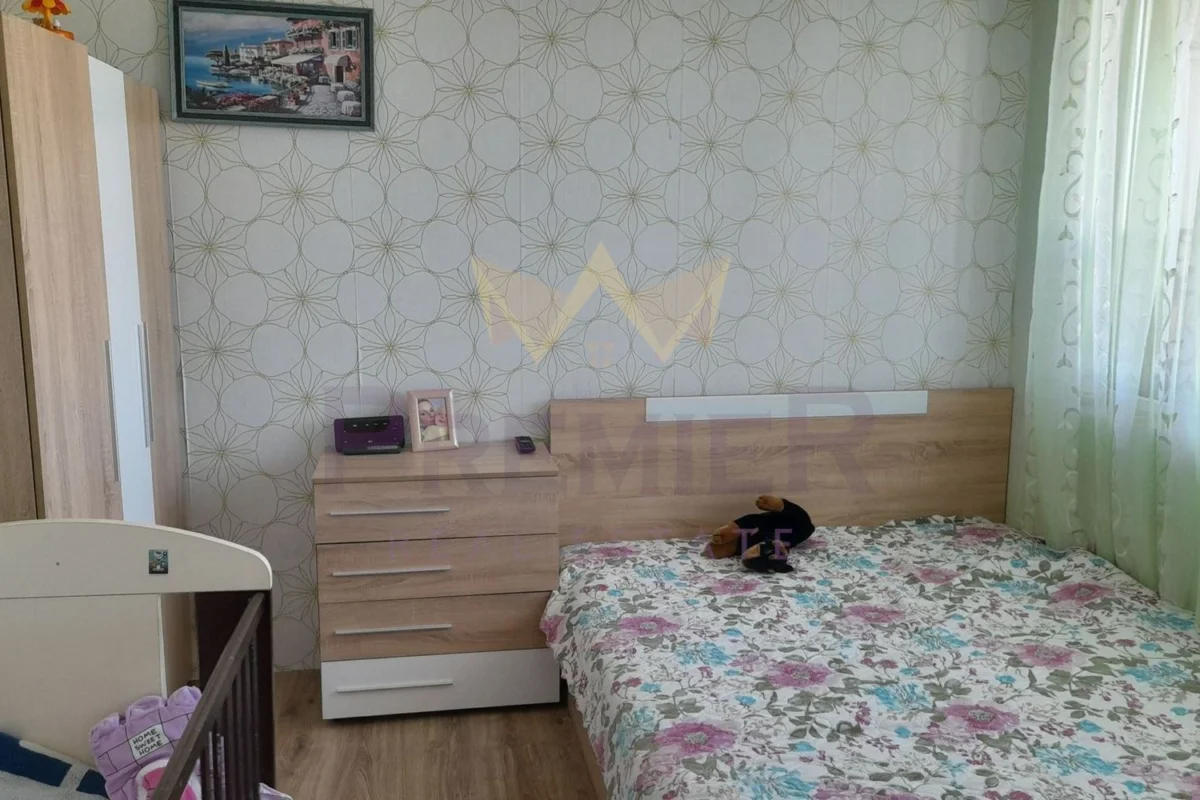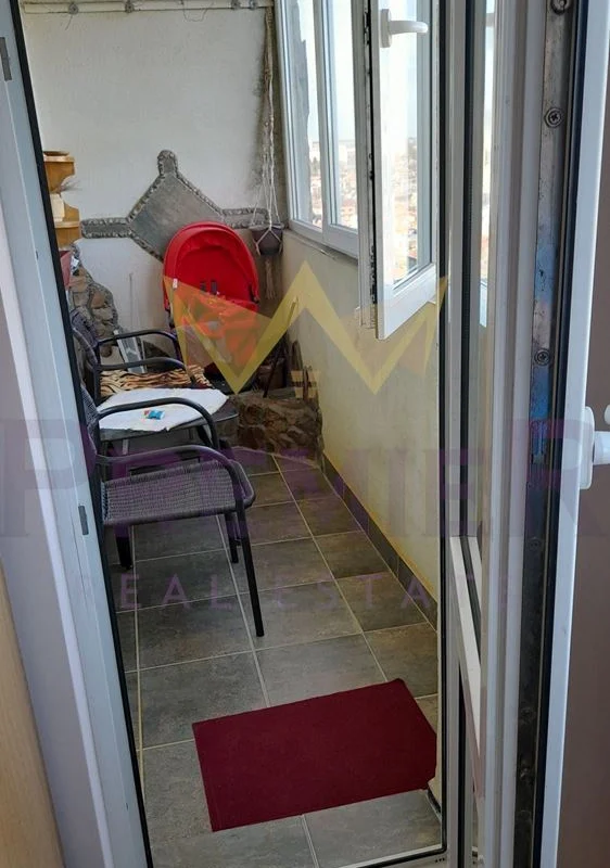 Имоти Премиер представя на Вашето внимание обзаведен и оборудван тристаен апартамент в гр. Добрич, кв. Дунавите, намиращ се на последен етаж с отремонтиран покрив 2023г с двойно покритие. Апартамента е слънчев и уютен с невероятна гледка. Направен частичен ремонт с изолация, нови интериори врати, нови ел. инсталации. Имота има следното разположение голям коридор, водещ до друг Г образен коридор с вграден гардероб и ОТДЕЛНА тоалетна, в единия край, и баня в другия край на коридора. Непосредствено до нея се намира детска стая, гледаща към Кауфланд. Следва слънчев хол, гледащ към булеварда. От него се влиза в спалнята, която дели обща остъклена тераса с хола. Непосредствено срещу спалнята се намира и кухненската част, към която има втора по-малка остъклена тераса в единия край, и килер в другия. Настилката в детската стая и спалнята е ламинат. Хол, кухня, коридор е теракот. Блока е кандидатствал за саниране, с направени паспортизации на всички. Изключително комуникативно място, в близост до Кауфланд, Лидъл, Техномаркет, Пепко и др. Наблизо има автобусни спирки, училища, градини. На 10 мин. пешеходно разстояние от центъра на града, както и от парка св. Георги.