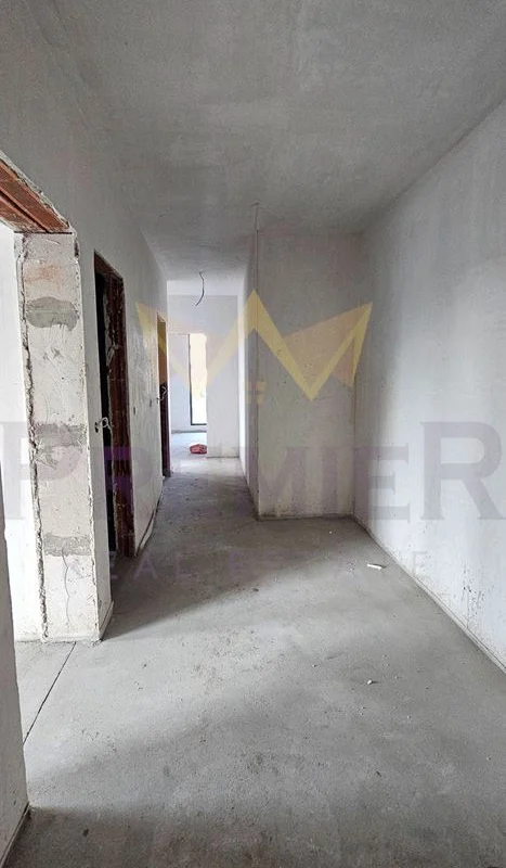 Разпределение: антре,коридор, дневна с кухненски бокс и трапезария,две спални, три бани с тоалетни и три балкона.