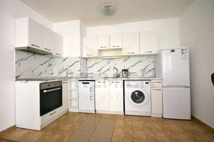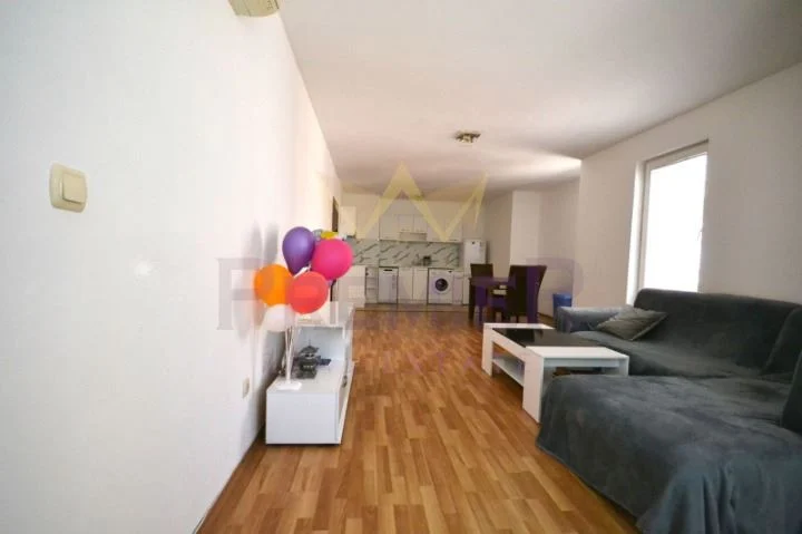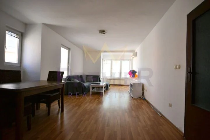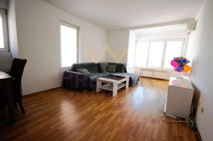Жилището е ситуирано на втори жилищен етаж в тухлена сграда с контрол на достъпа и видеонаблюдение . Изложение ИЗТОК/ЗАПАД. Обща площ от 120м2, с разпределение както следва: входно антре, дневна с кухненски бокс, две спални, баня с тоалетна, отделна тоалетна, тераса. Отоплението е посредством ТЕЦ и климатици. Към имота принадлежи мазе с площ 4м2.