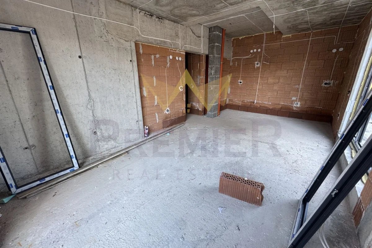 Състои се от входно антре, мокро помещение, две бани, дневна с кухненски бокс, две спални, голяма панорамна тераса.