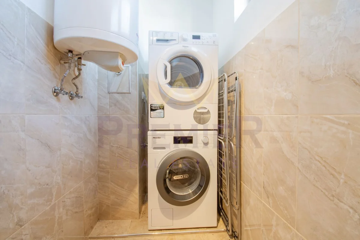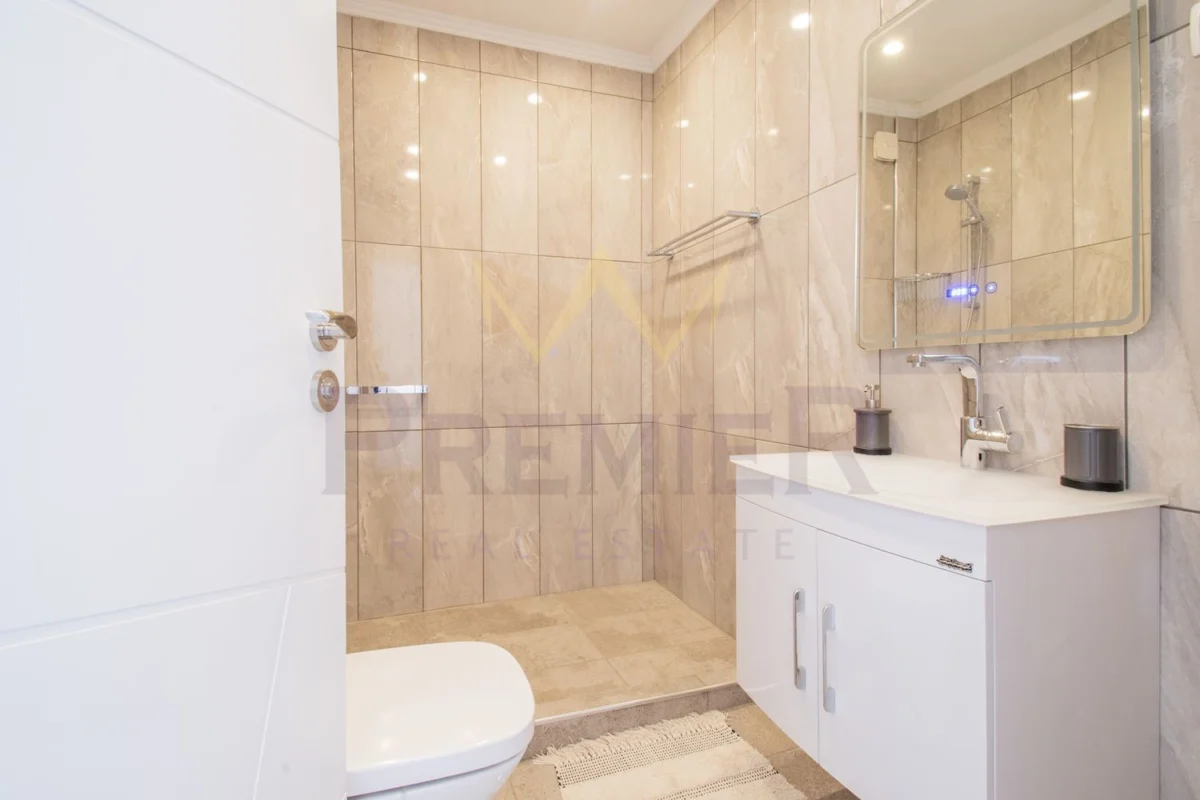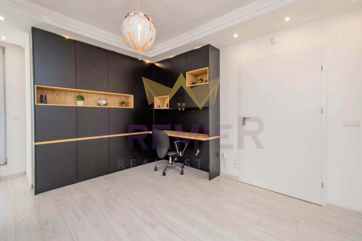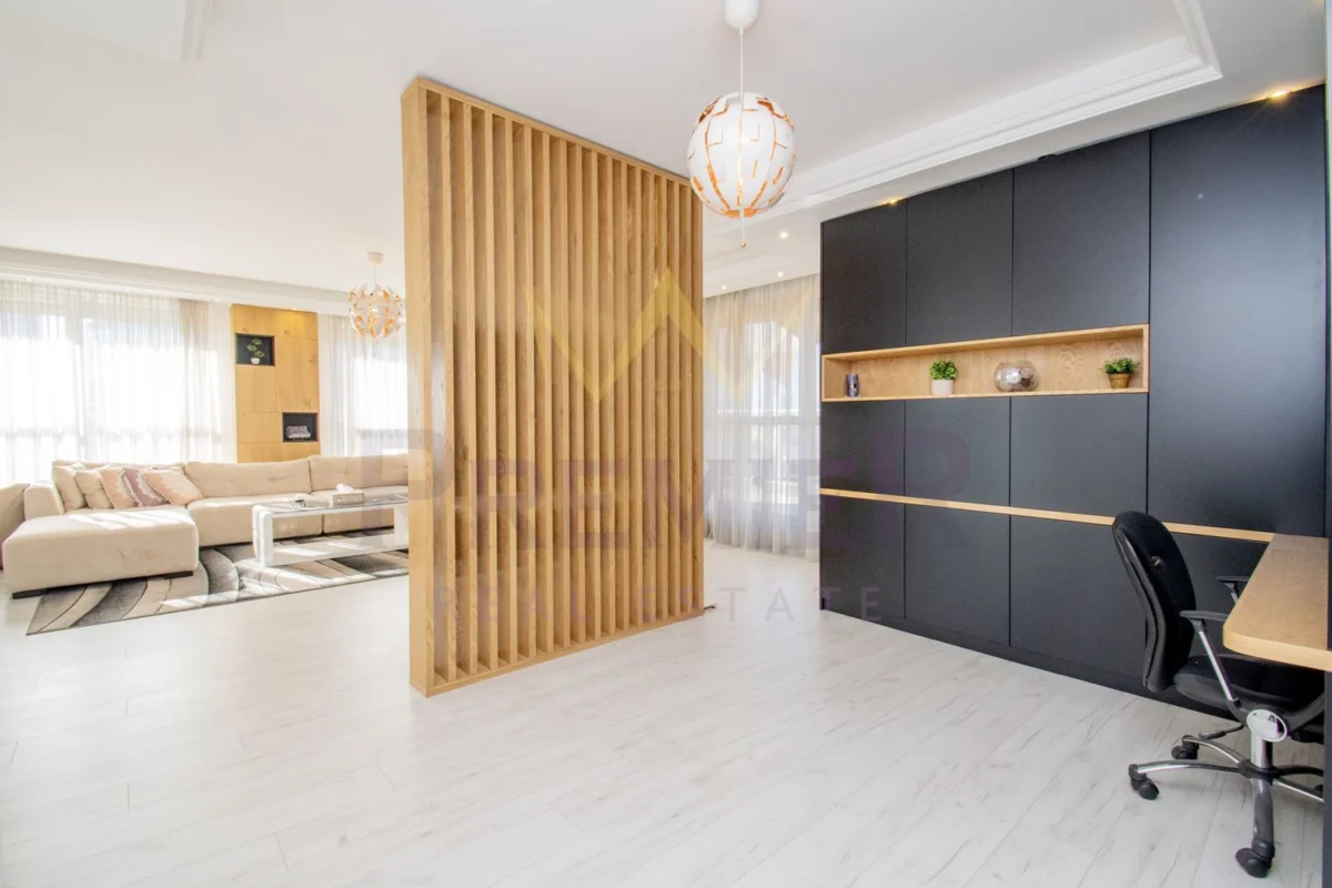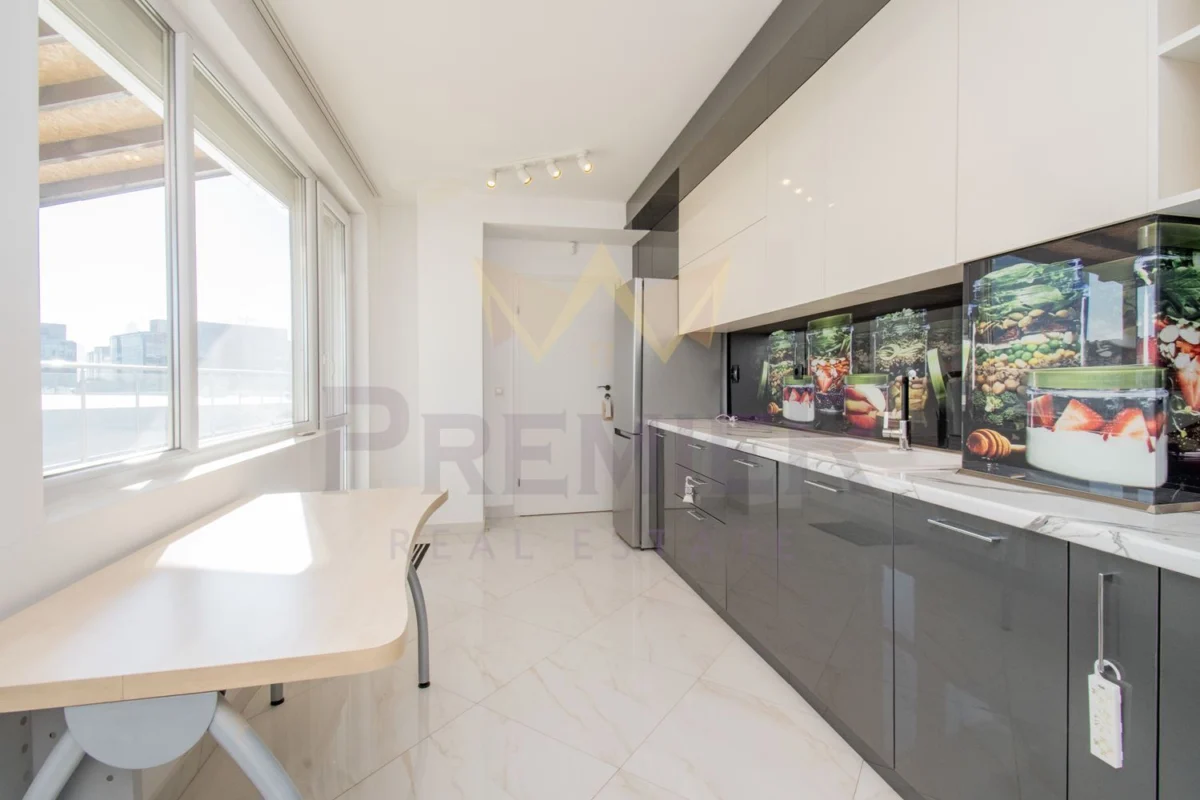 Апартаментът се състои от антре, просторна всекидневна с офис кът и трапезария, отделна голяма кухня с прилежащ склад към нея, тоалетна, голяма тераса, две спални – всяка ,от които със самостоятелна баня и тераса, както и голямо мокро помещение.