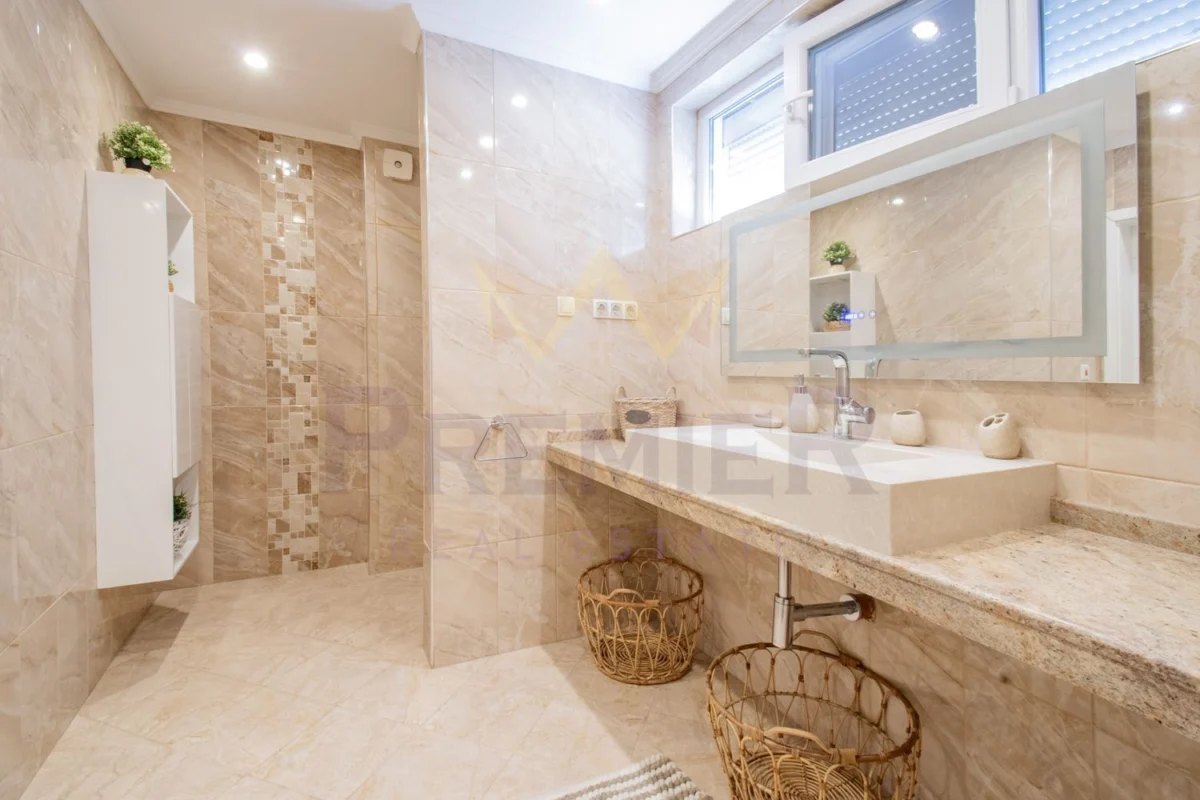 Дограмата е Baufen PVC 5-камерен профил с 4К стъклопакети, изолация Baumit.
